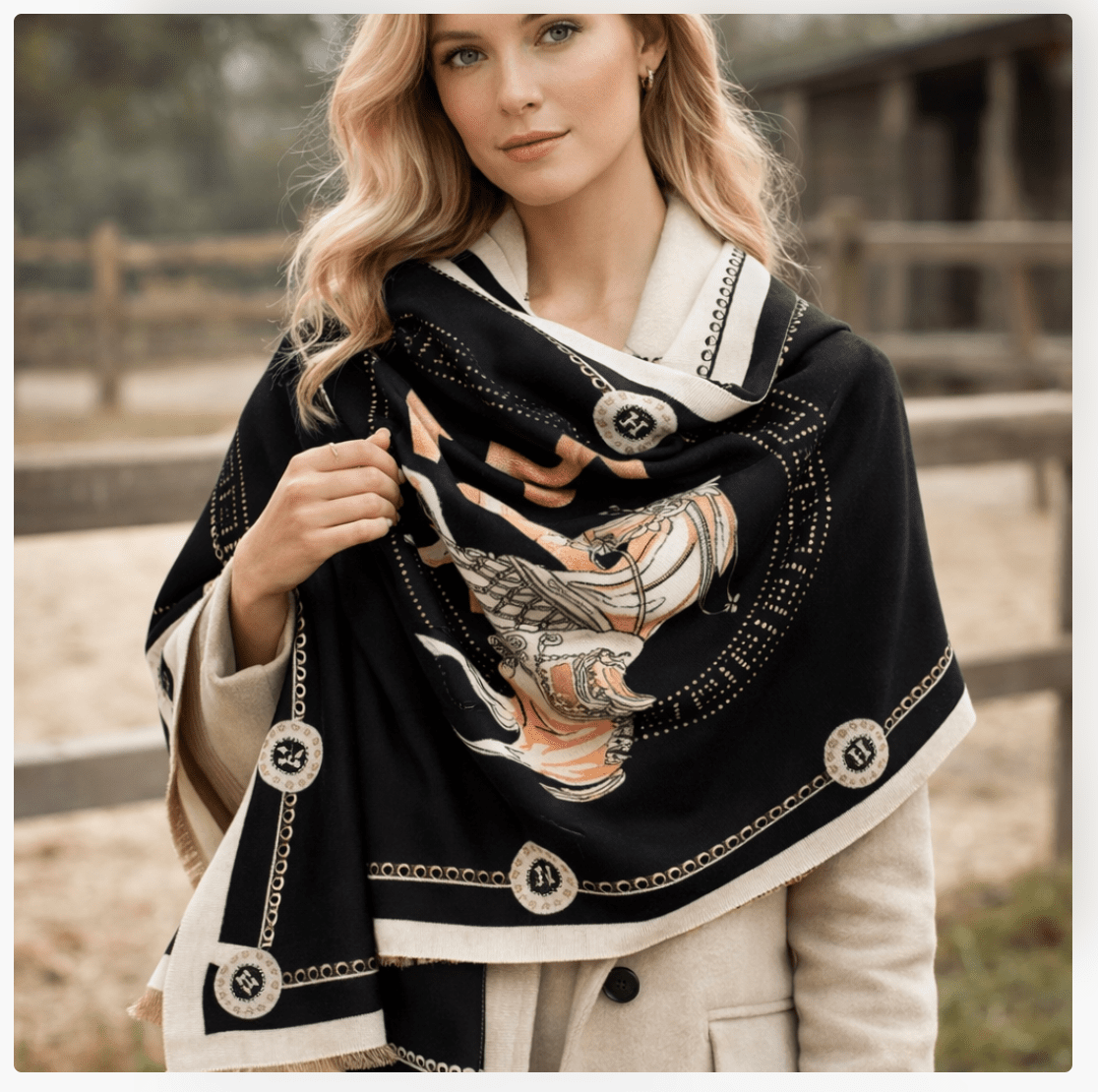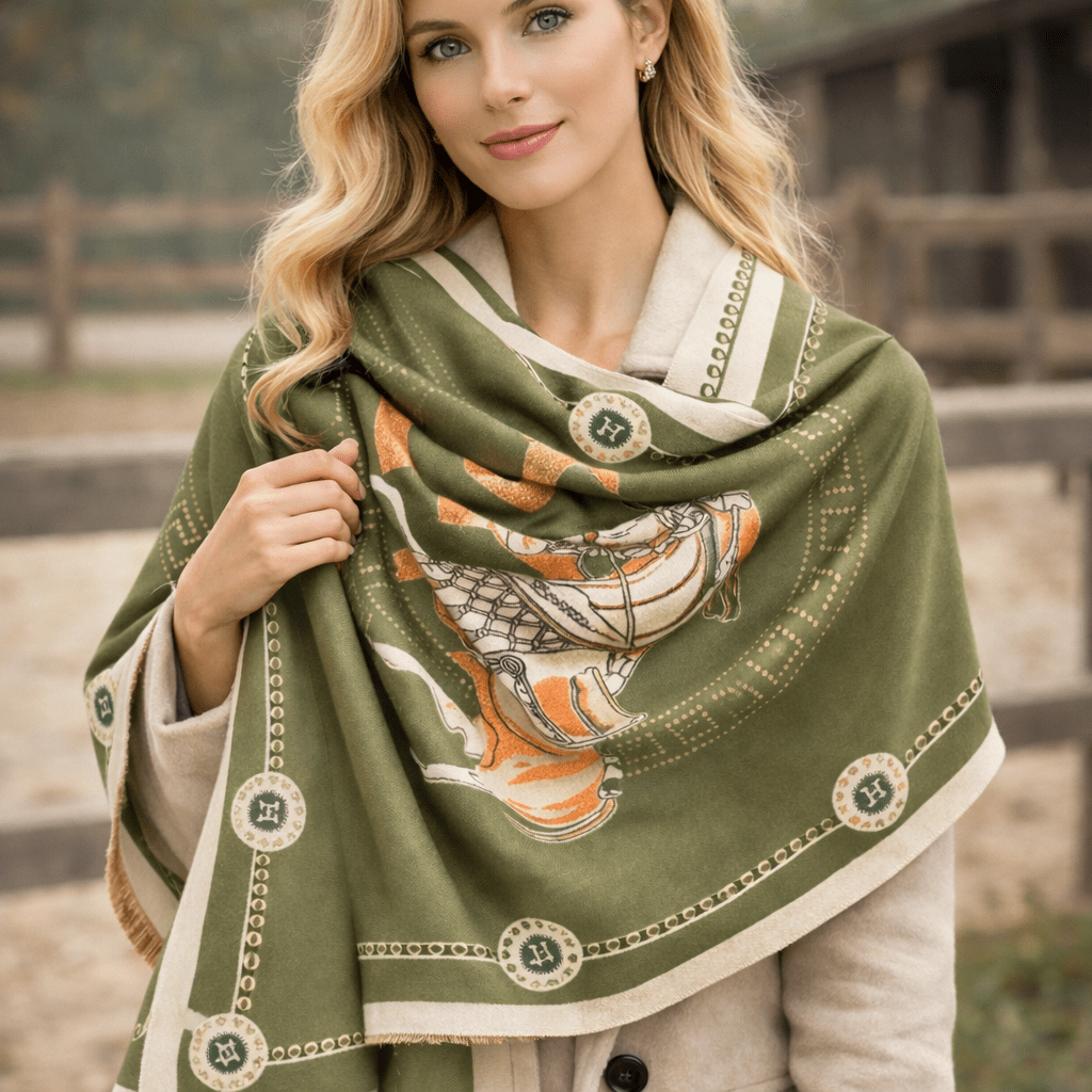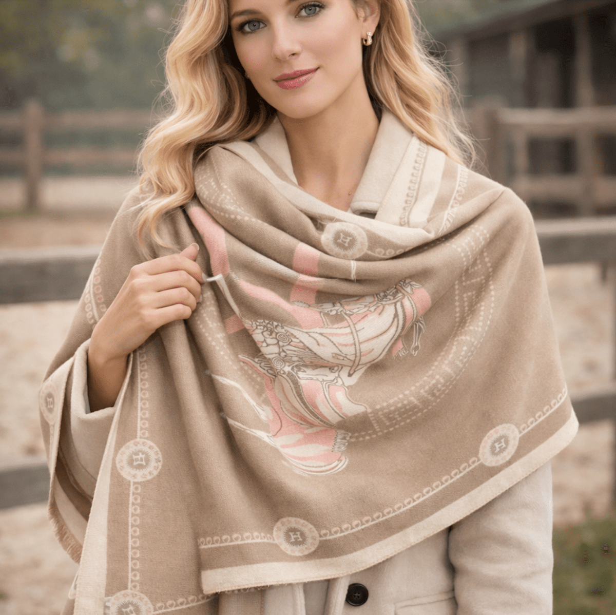 Indulge in luxury with our hugely popular and fabulously elegant Equestrian Print Cashmere Pashminas. The soft cashmere fabric and exquisitely timeless equestrian print will add effortless sophistication and charm to any outfit.