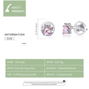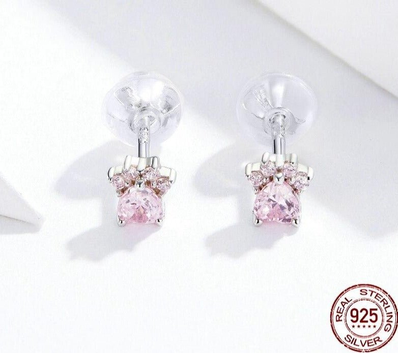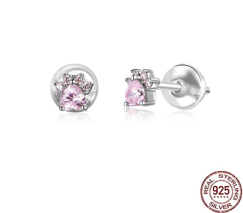 Pfoten-Ohrstecker aus Sterlingsilber und rosa Zirkonia