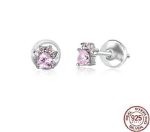 Sterling Silver & Pink Cubic Zirconia Paw Stud Earrings-Furbaby Friends Gifts