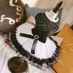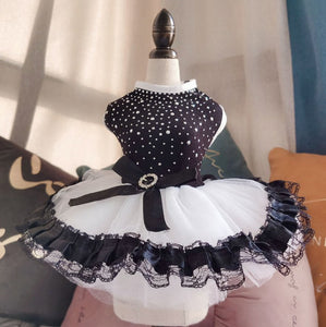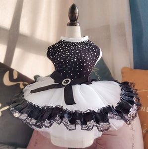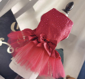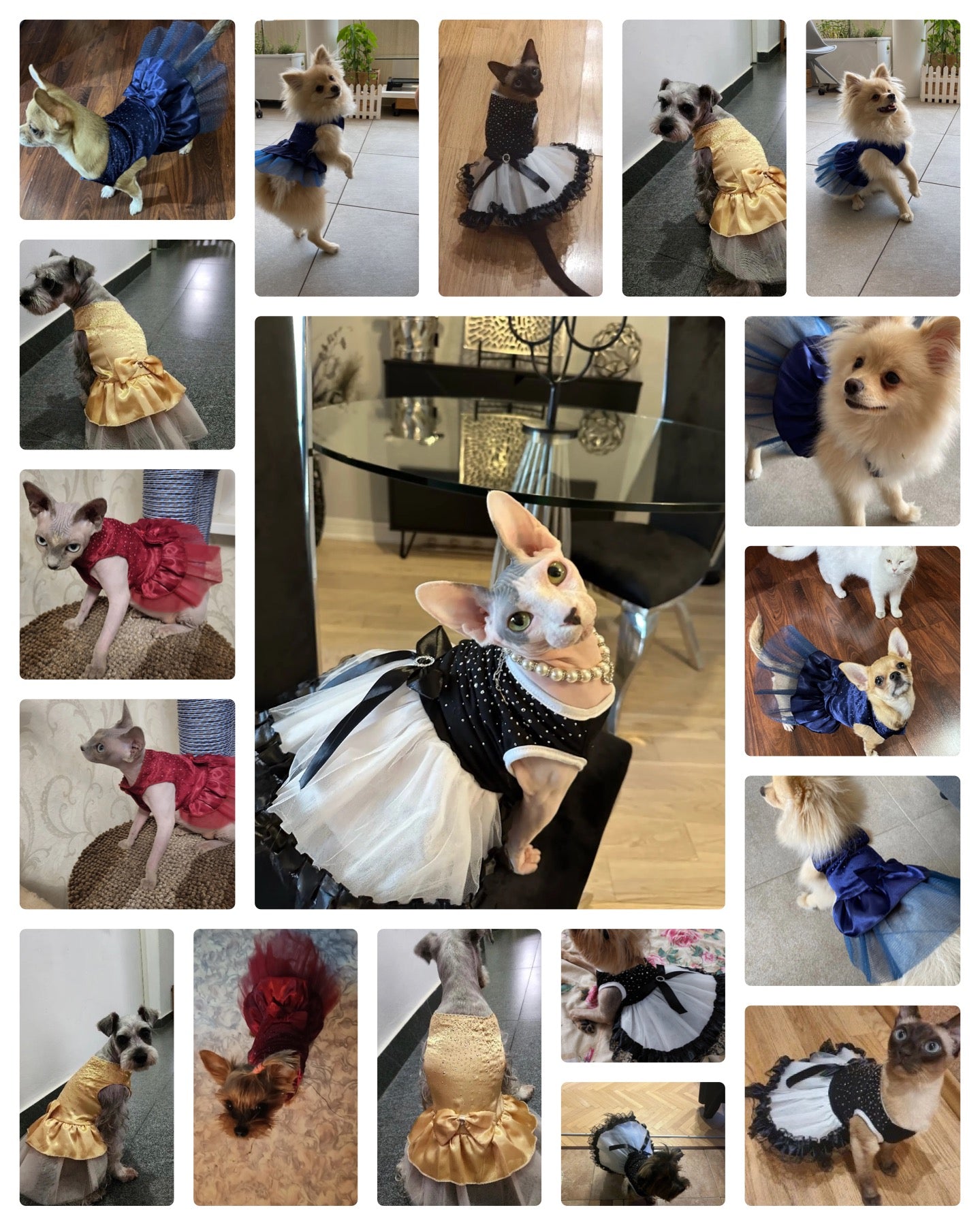 Erster Geburtstag des Welpen? Auf zu einer Party mit dem Hündchen? Erfreuen Sie Ihre Freunde und sozialen Medien mit diesem absolut bezaubernden Partykleid, wunderschön gefertigt mit Seidensatin-Finish und Netzunterrock.