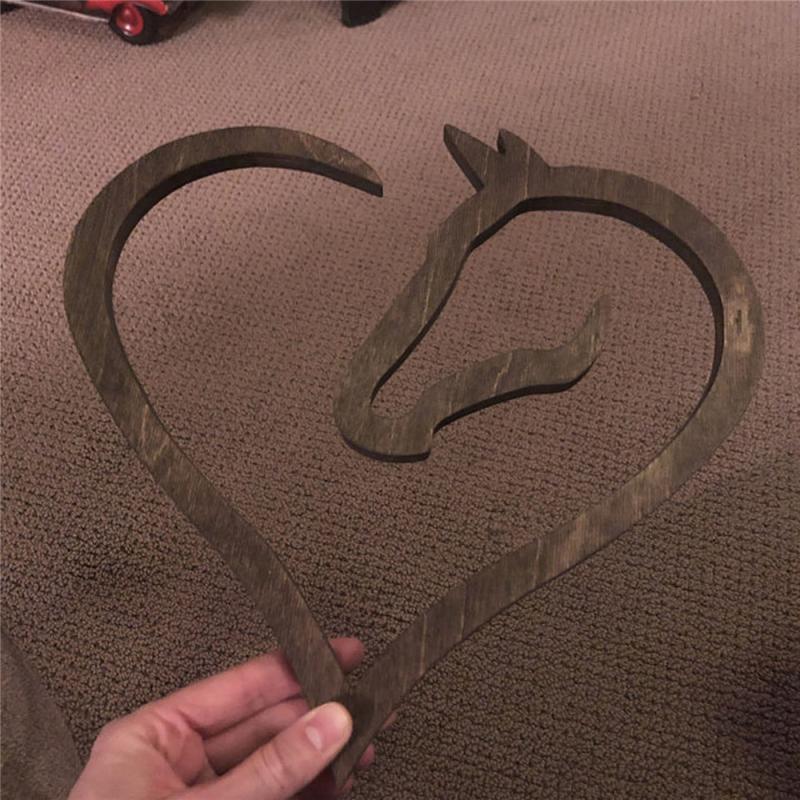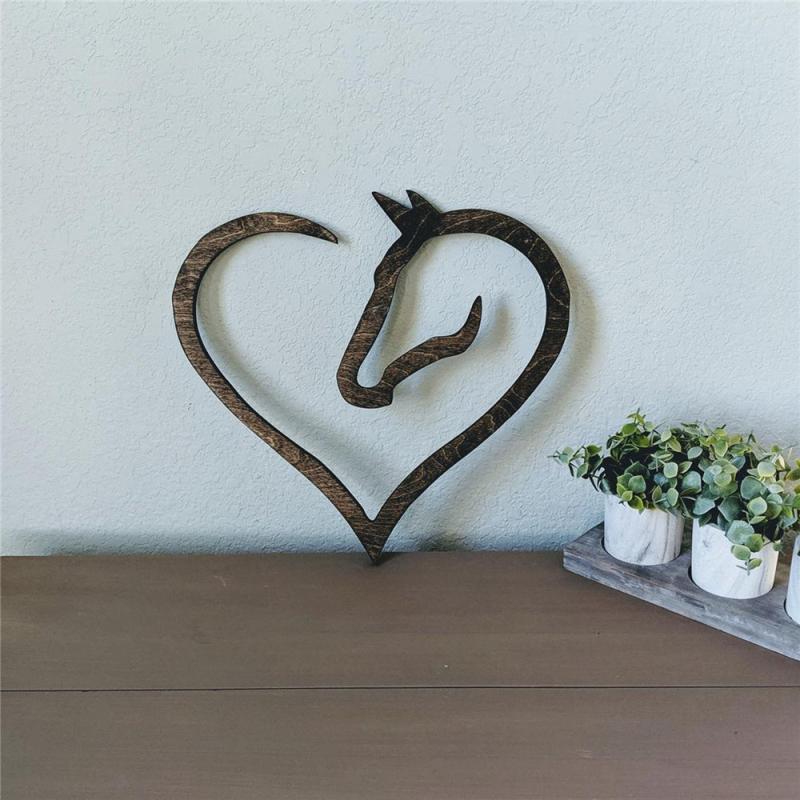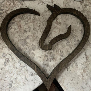 Wir freuen uns, Ihnen dieses wunderschön handgefertigte Holzornament/Wandschild vorstellen zu können, das speziell für Pferdeliebhaber hergestellt wurde. 30 cm hoch und breit und elegant geformt, um Ihre Liebe zu zeigen. Kann drinnen oder draußen aufgehängt werden.