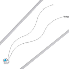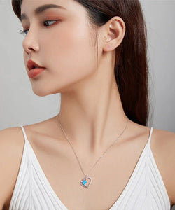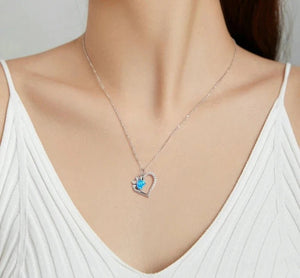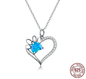 Our 'Heart Paw' pendant necklace makes for the perfect gift for all pet lovers.ย Featuring a beautiful azure blue moonstone crystal nestling within a silver paw, in turn within a crystal heart, itself inscribed appropriately with 'Forever Love'.ย The pendant comes complete with an 18 inch chain.ย A hugely popular gift.