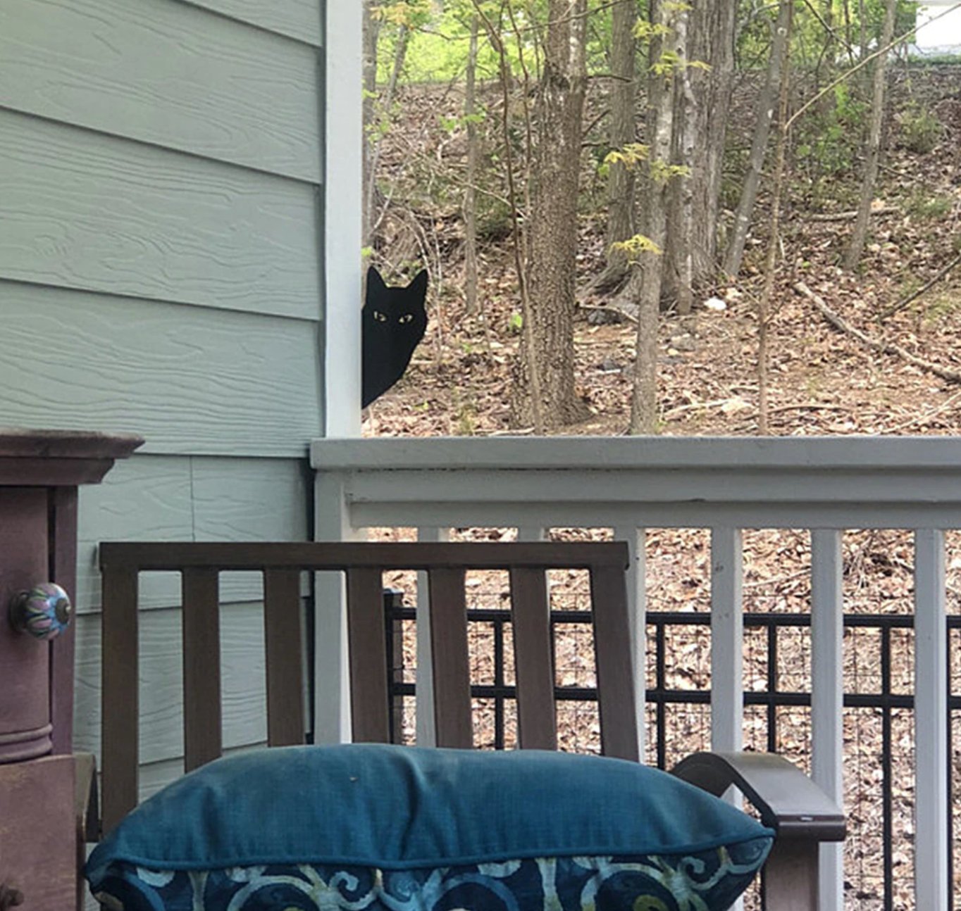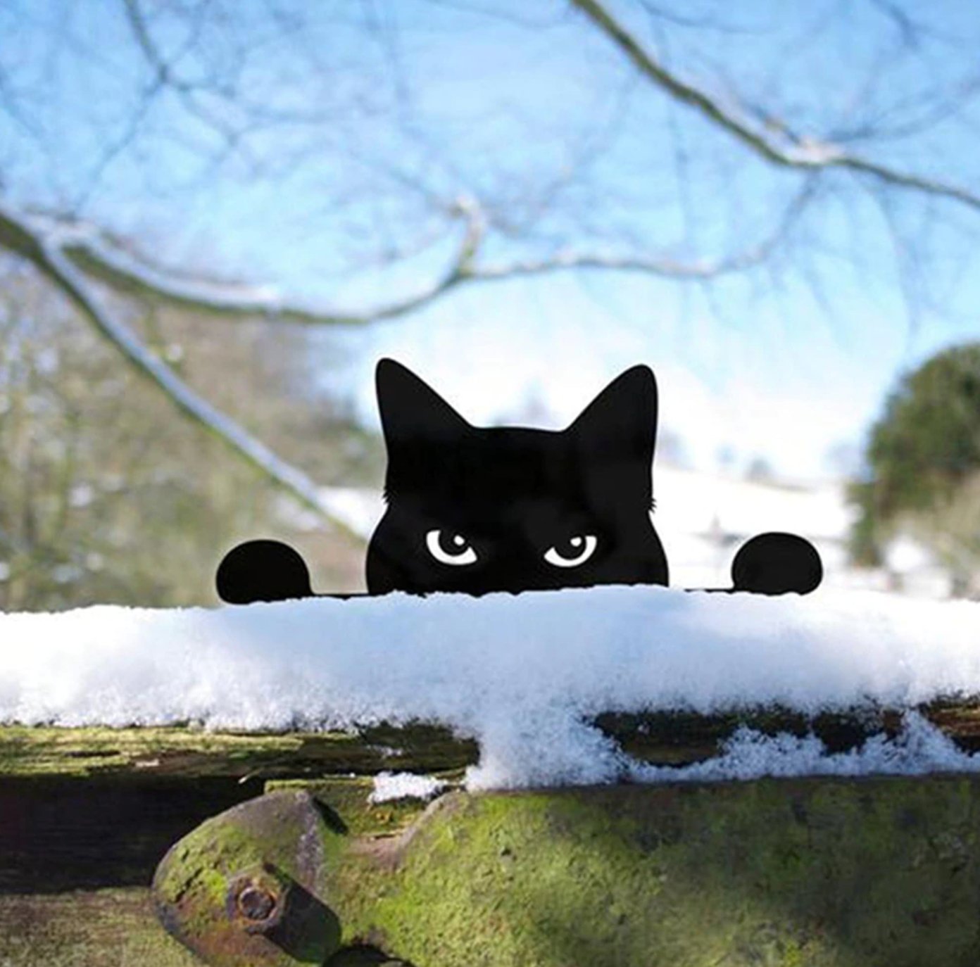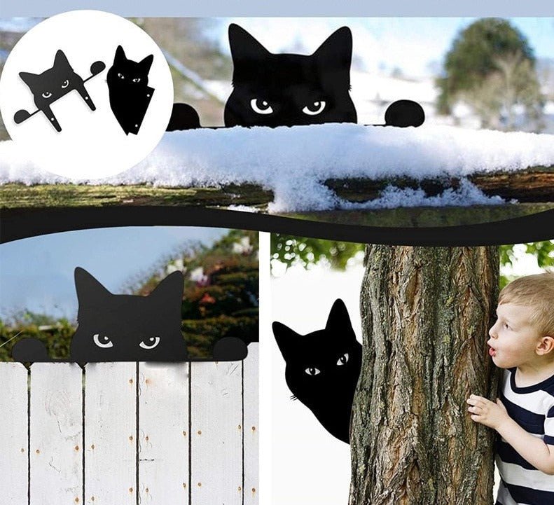 Black Cat Peeping Tom! Garden Ornaments-Furbaby Friends Gifts