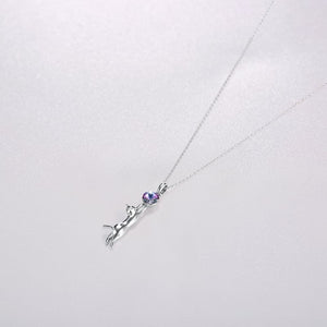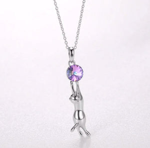Blue Crystal & Silver Cat Pendant Necklace-Furbaby Friends Gifts