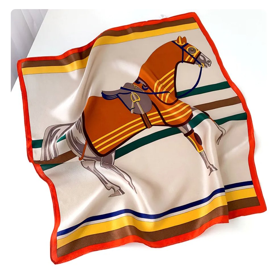 Treat yourself to one of our fabulous silky horse print scarves, featuring a beautiful, colourful equestrian print.