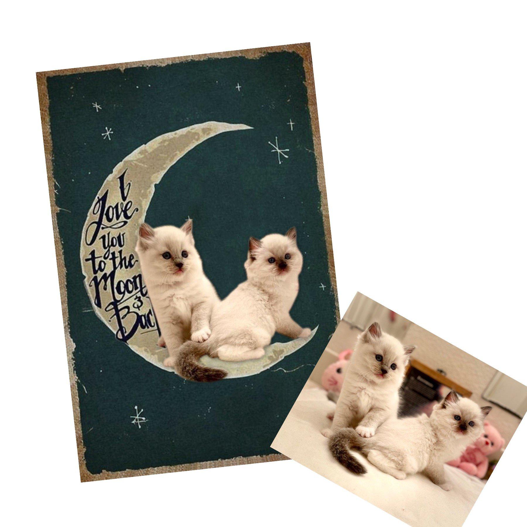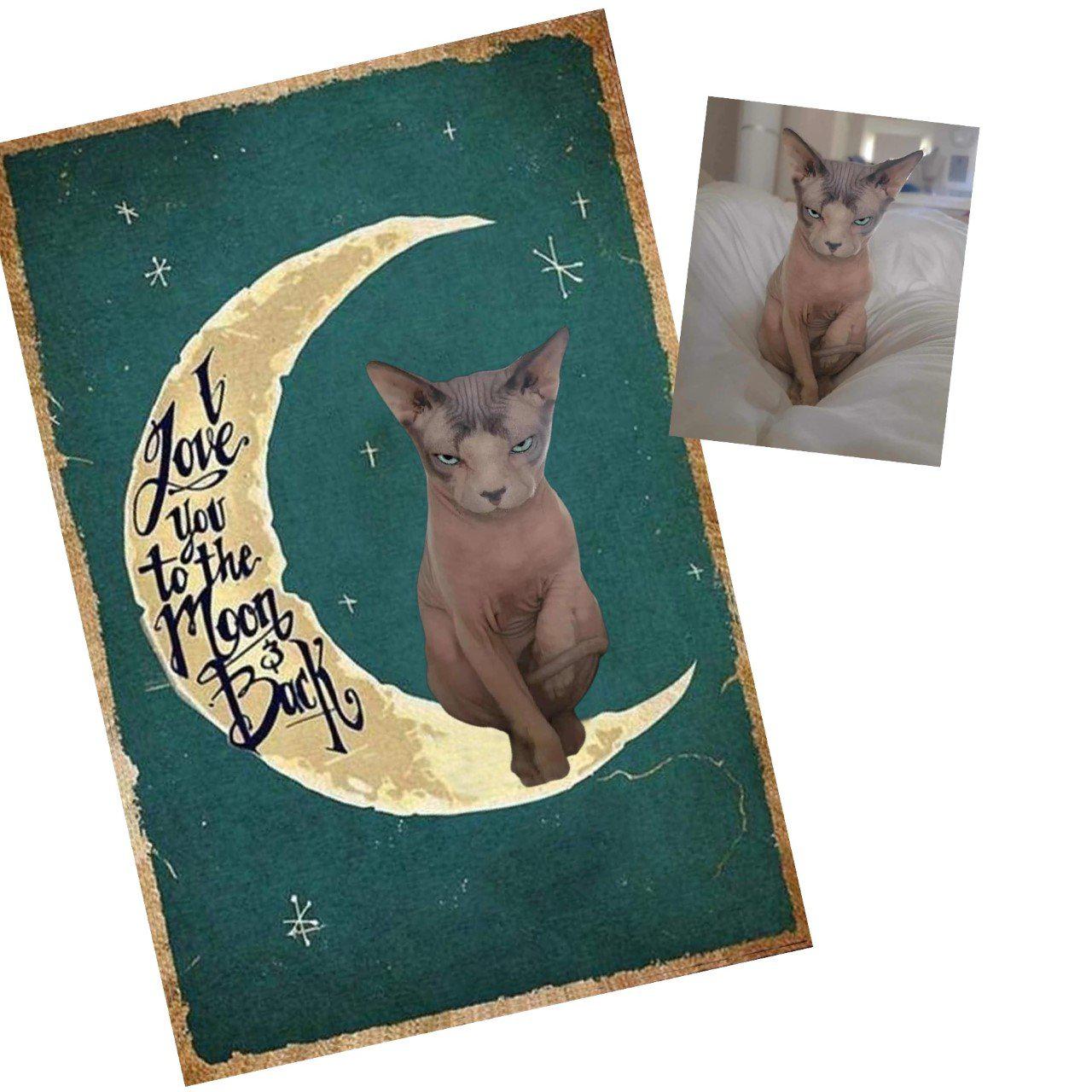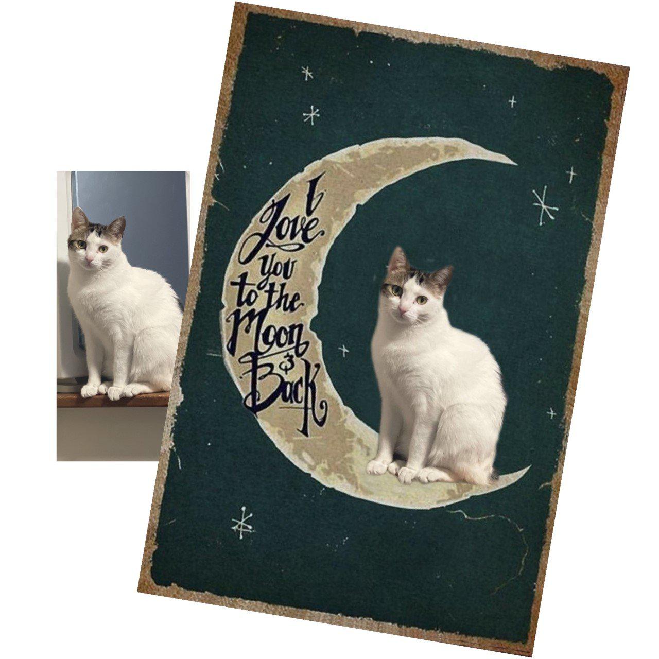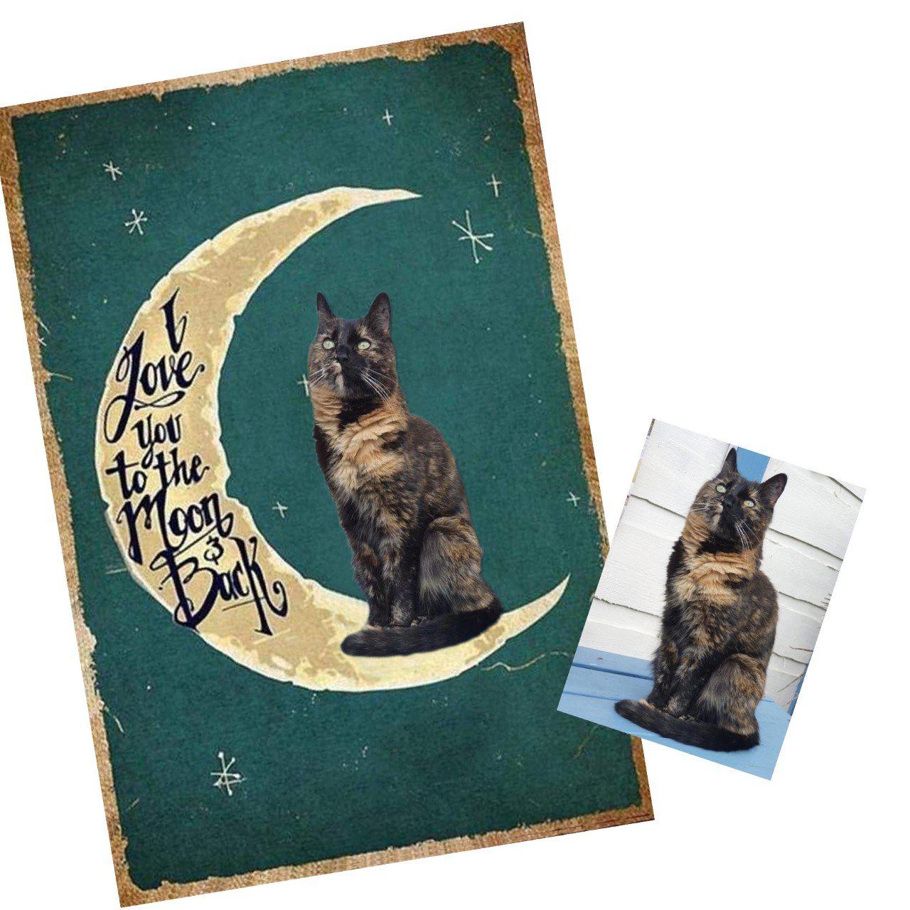 Simply choose the colour background and size you prefer, and then send your pet photo to us at help@furbabyfriend.com after placing your order. Our designer will then add your pet to the moon instead of the demonstration black cat!     We will send your mock design to you in the first instance for your approval prior to despatch.