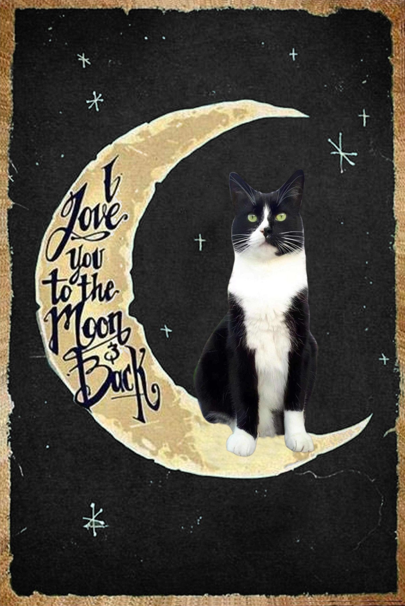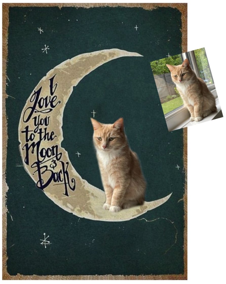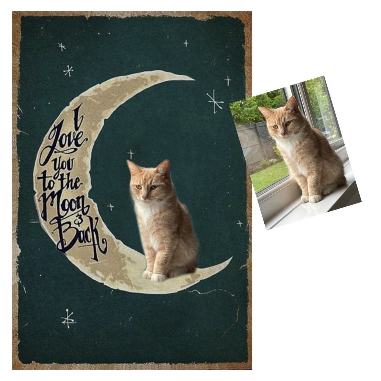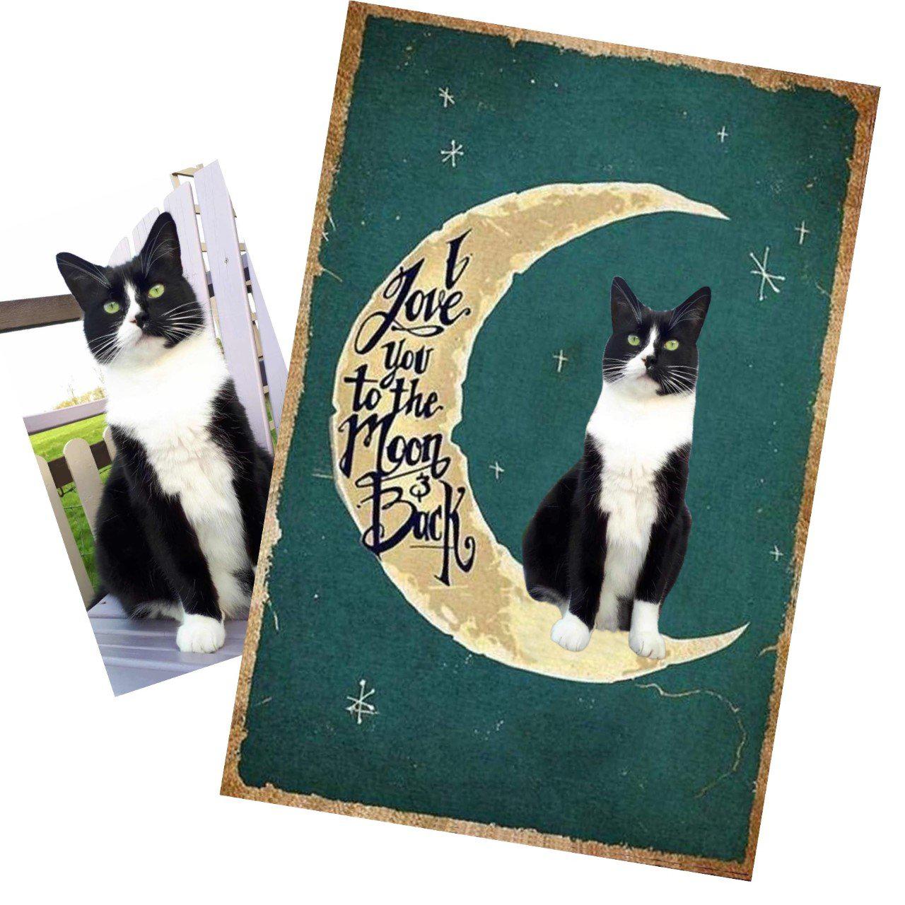 Simply choose the colour background and size you prefer, and then send your pet photo to us at help@furbabyfriend.com after placing your order. Our designer will then add your pet to the moon instead of the demonstration black cat!     We will send your mock design to you in the first instance for your approval prior to despatch.
