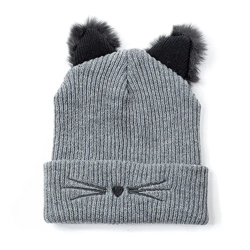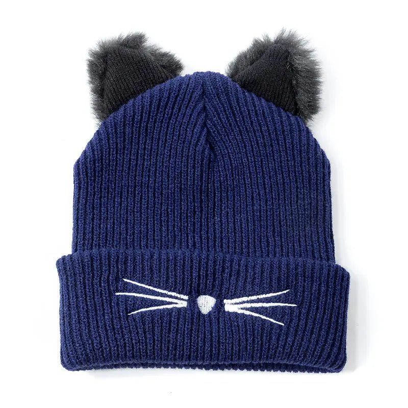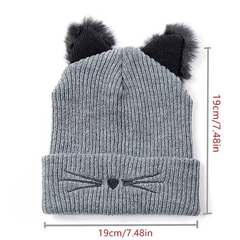 Instantly look cute and stay warm this winter season in our adorable Cat Ears Beanie  - complete with fluffy ears and embroidered whiskers on the cuff!