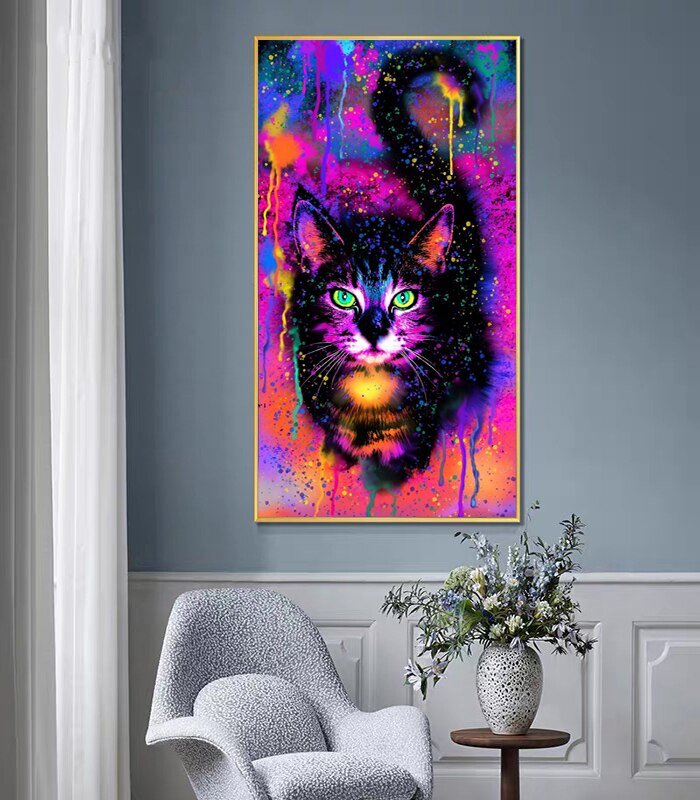 We are delighted to announce the return of this previously sold out and hugely popular vibrant canvas print! A firm staple of our Cat-Themed Wall Art range.   Made with high quality, vibrant oil spray ink to add the WOW factor to any interior!