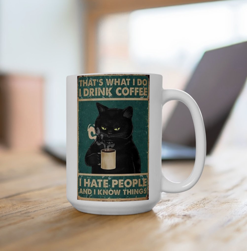 Whether you're drinking your morning coffee, evening tea, or something in between โ€“ this mug's for you! It's sturdy and glossy with a vivid, humorous print that'll withstand the microwave and dishwasher.