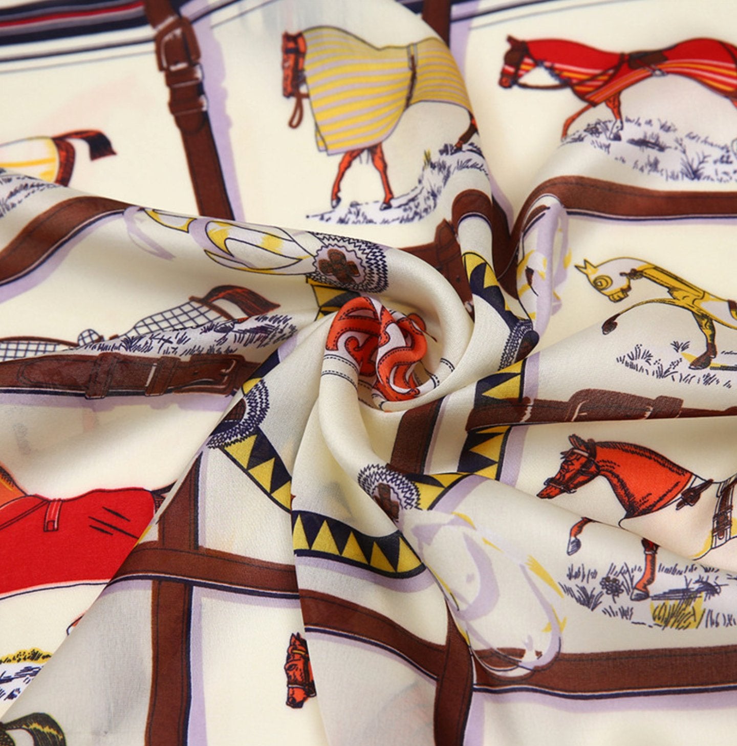 Large Horse Pattern Silk Square Scarves-Furbaby Friends Gifts