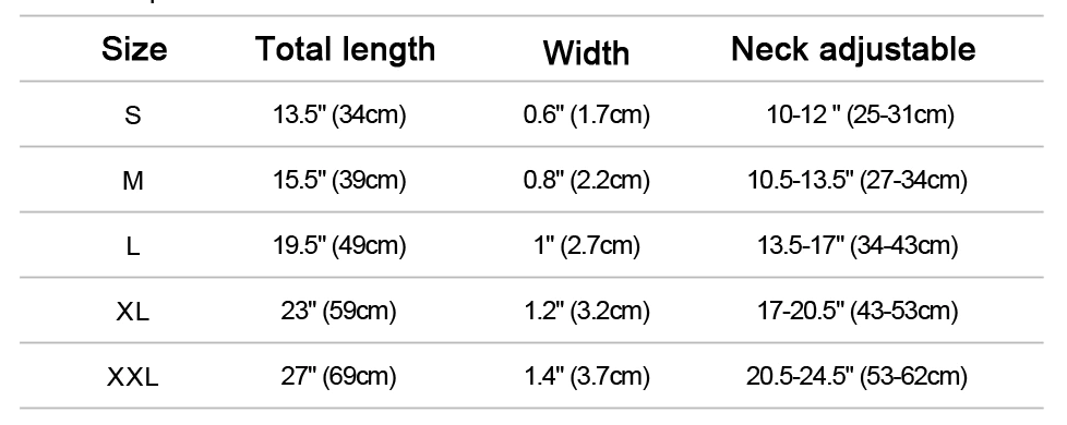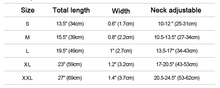 • Sizes: XS -XL (See Guide Below)