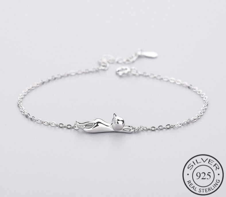 'Playing Cat' Sterling Silver Bracelets-Furbaby Friends Gifts