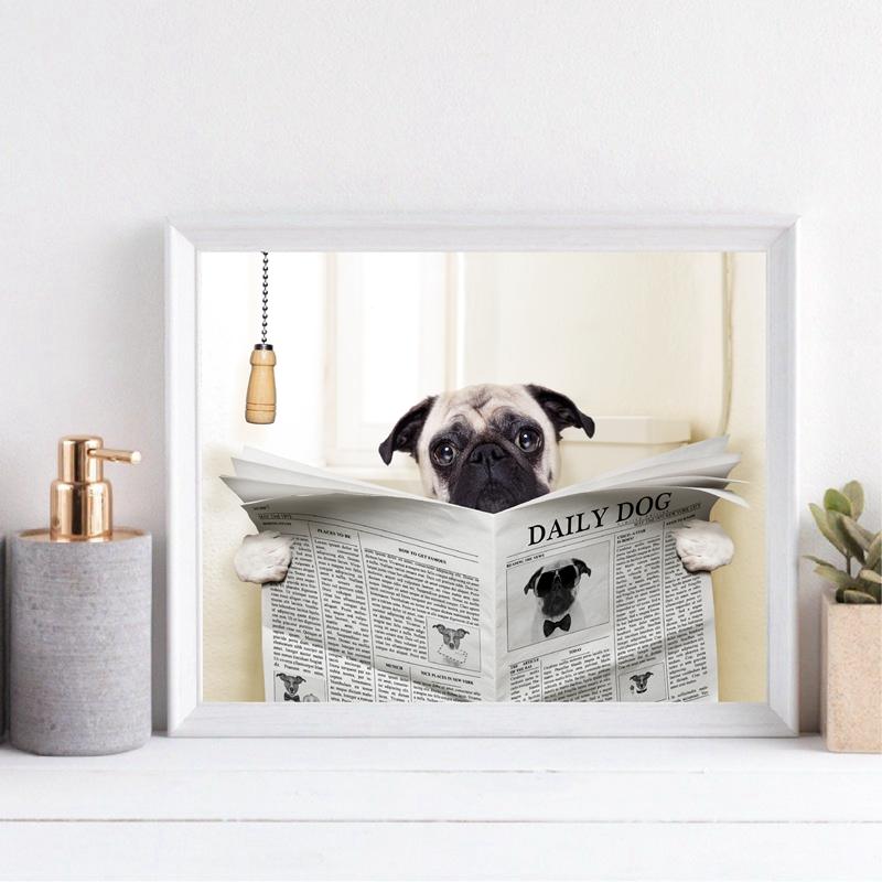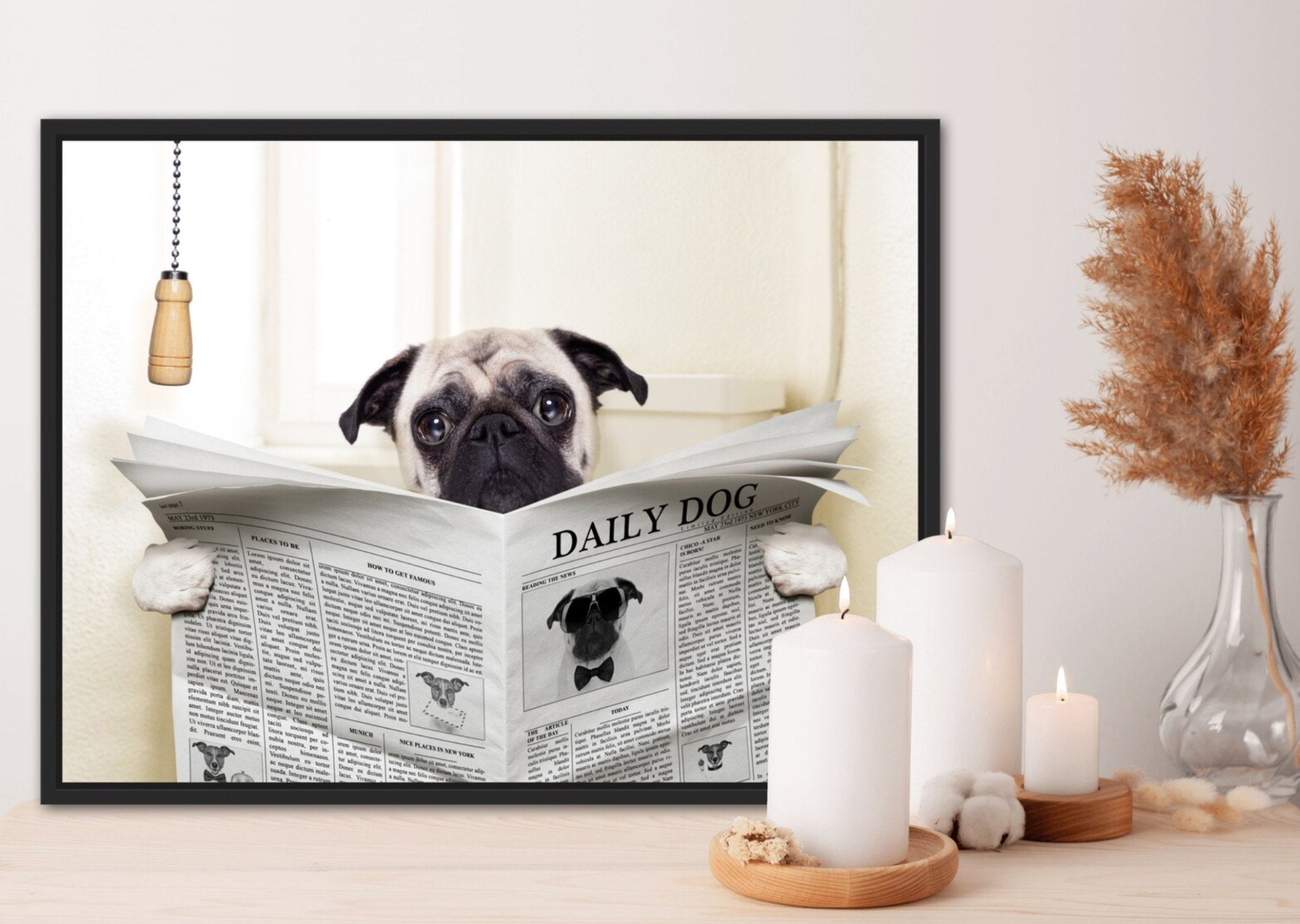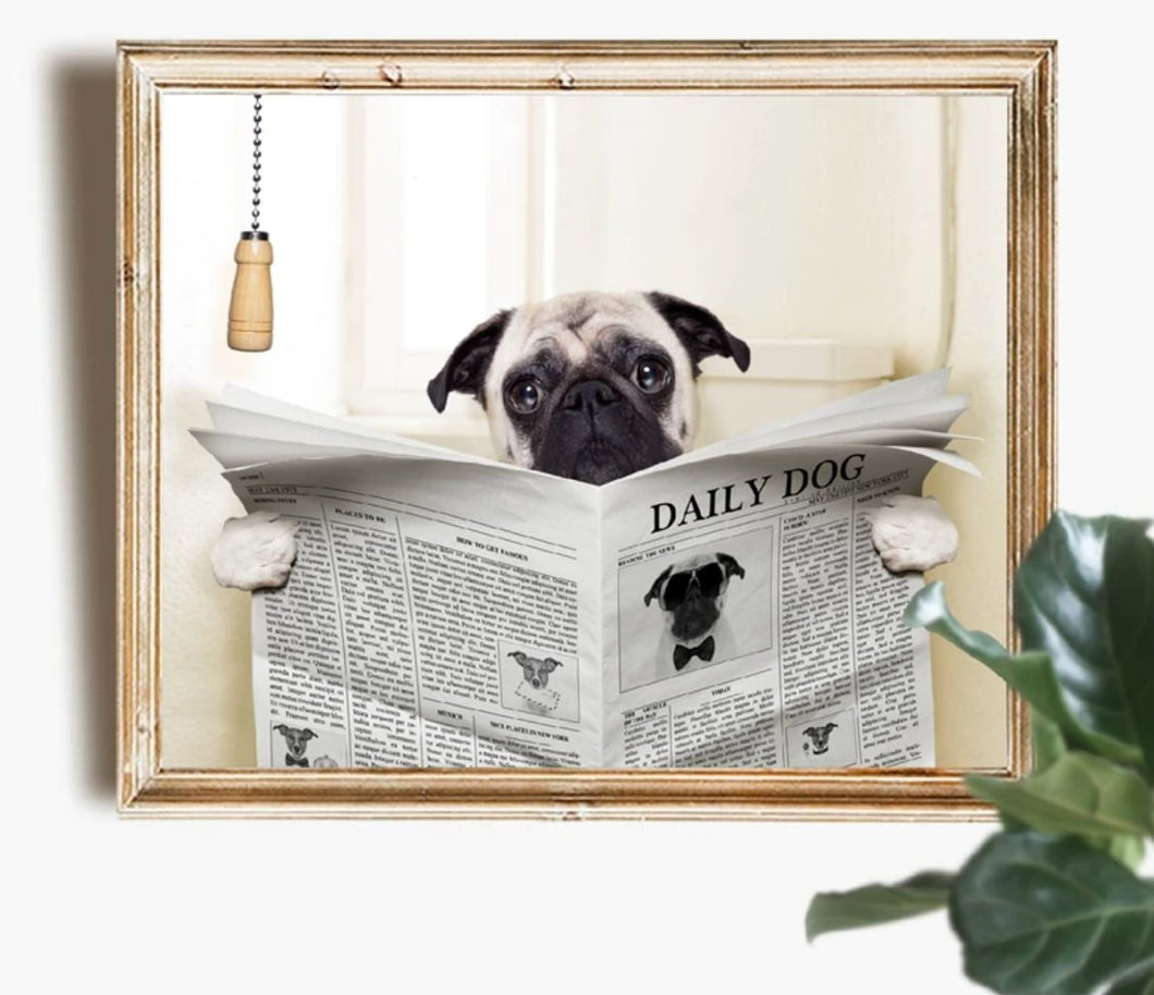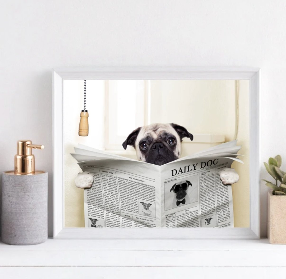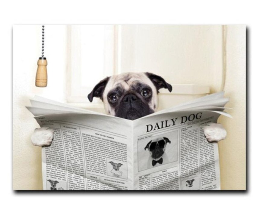 Introducing our hilarious 'Dog in the Loo' canvas oil print series, featuring this adorable Pug!  You can find the other designs in this series by clicking here.