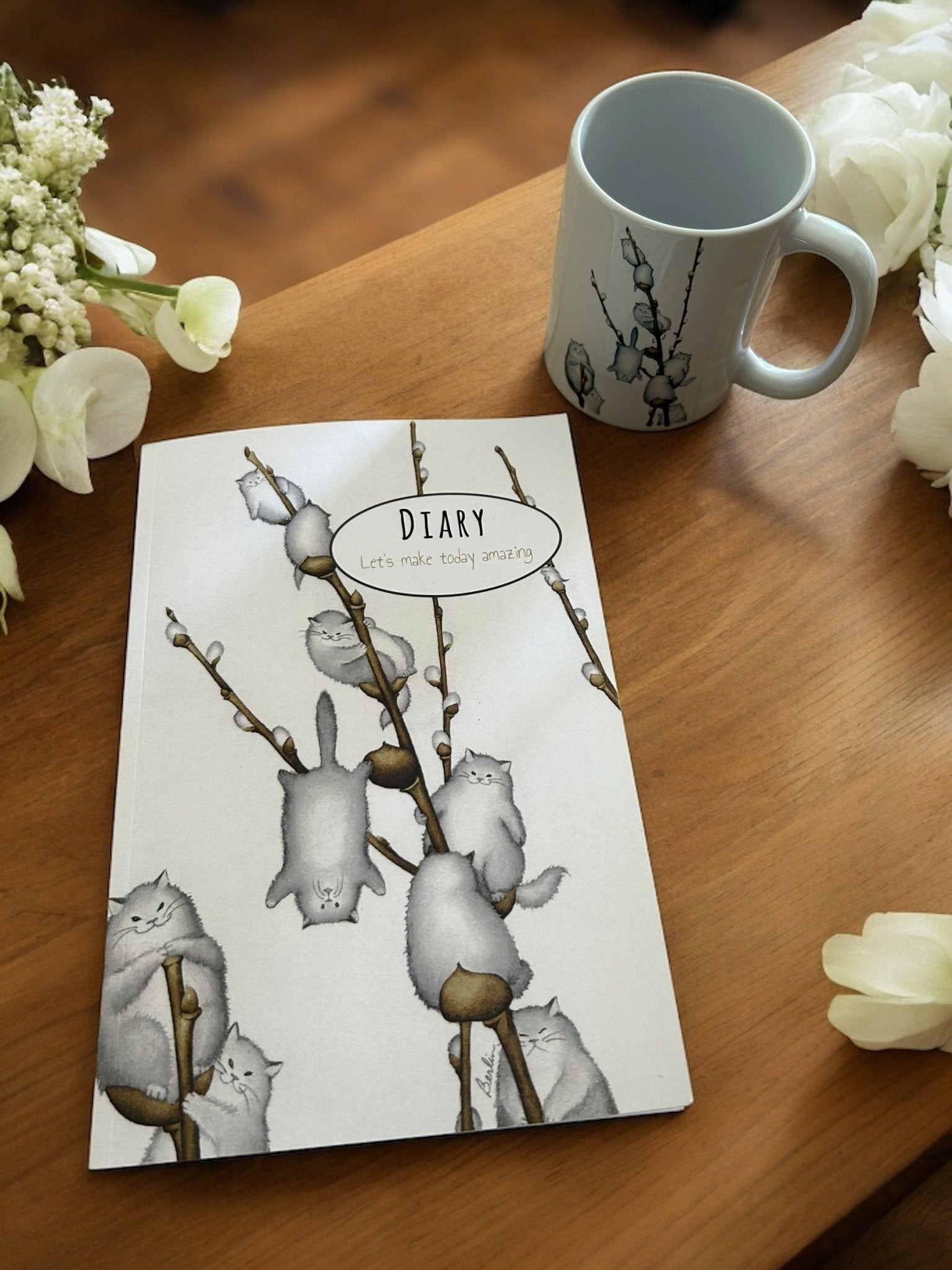 These spacious diary / journal pages, featuring the wonderful Pussywillow Kitties design by Rose Berlin, are perfect for recording the day's events, whimsical plans and genius ideas, important addresses, birthdays, poems, inspirational quotes, recipes, scrap notes, press cuttings and photos in order to create the perfect reference book for your fabulous year!