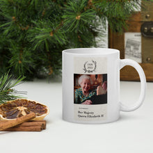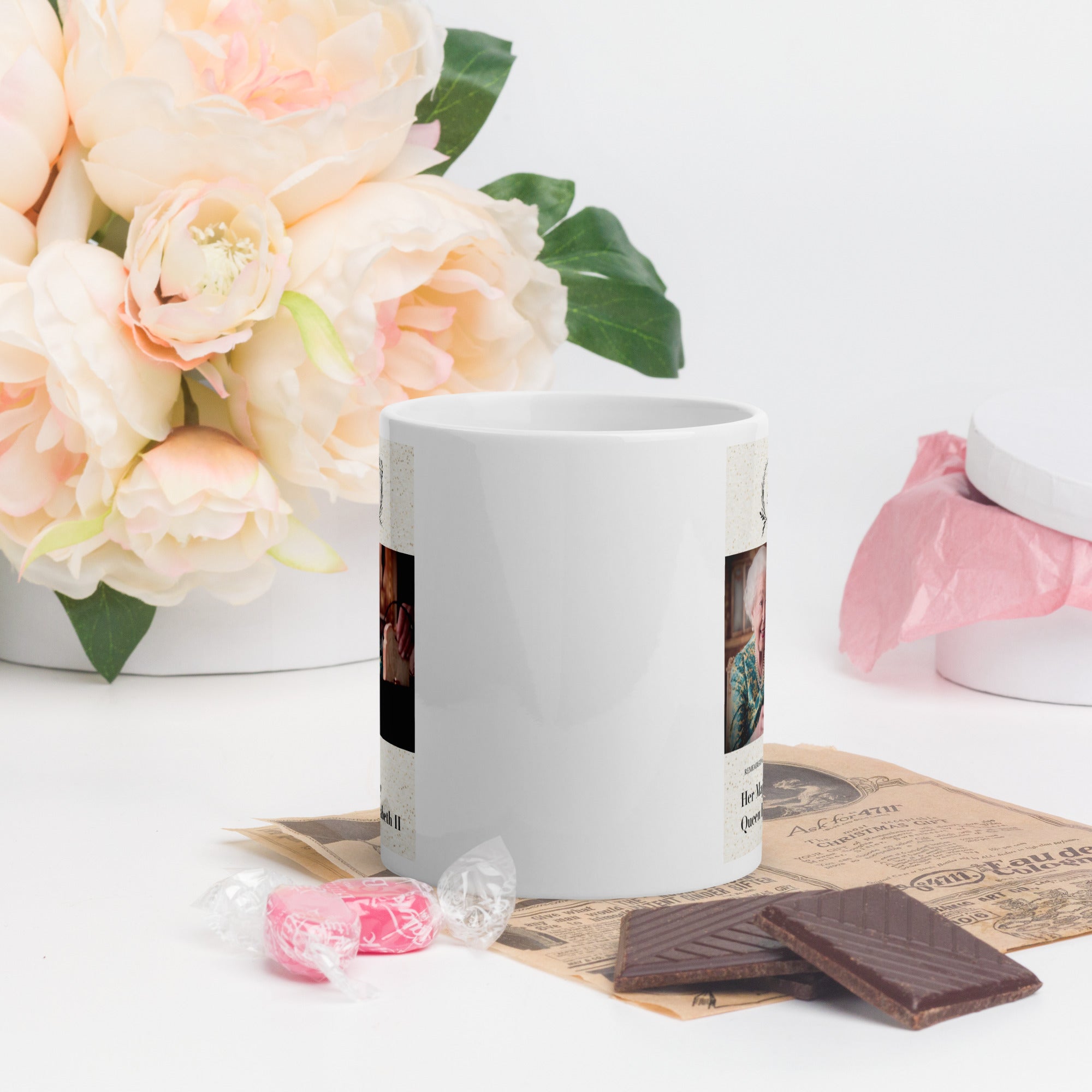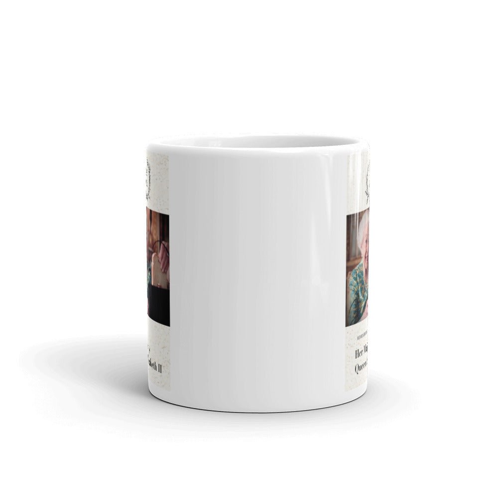We feel this design particularly shows off Her Majesty's wonderfully cheerful nature -ย  and her twinkly eye! We understand that she, like the famous bear who was sitting opposite her when this image was taken, had a 'Jam Penny' sandwich every day of her life.ย Now you can enjoy one too with your extra special mug of hot tea!
