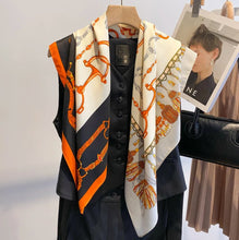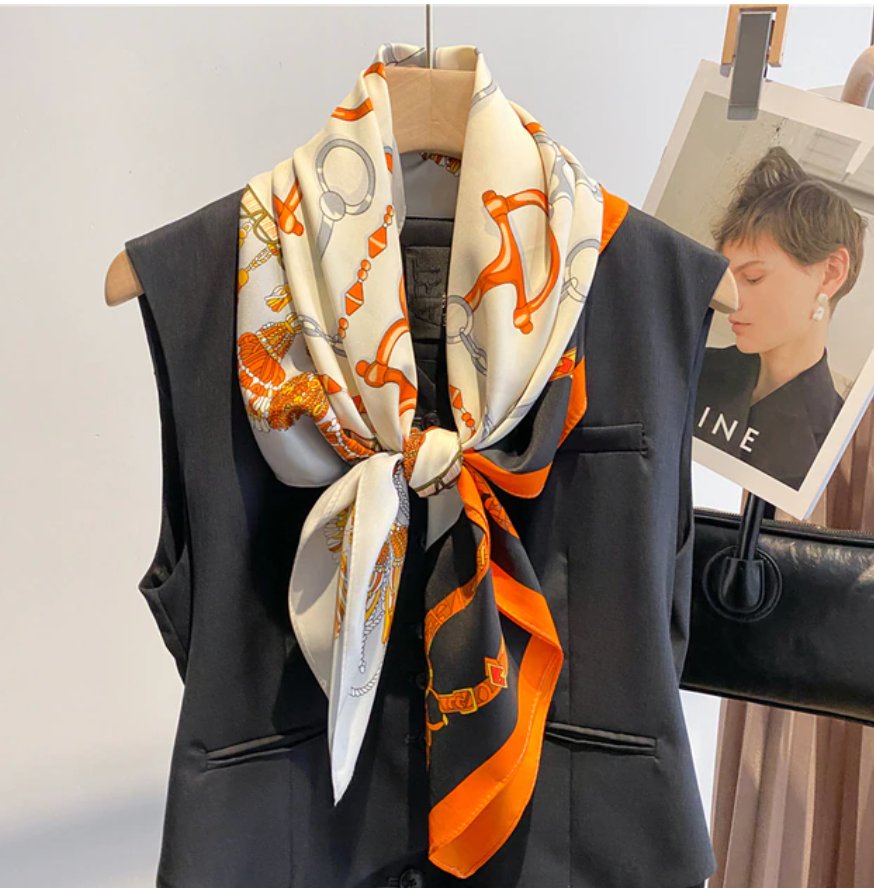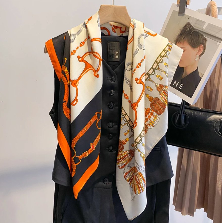 Treat yourself to one of our fabulously silky scarves, featuring a beautiful classic equestrian print.