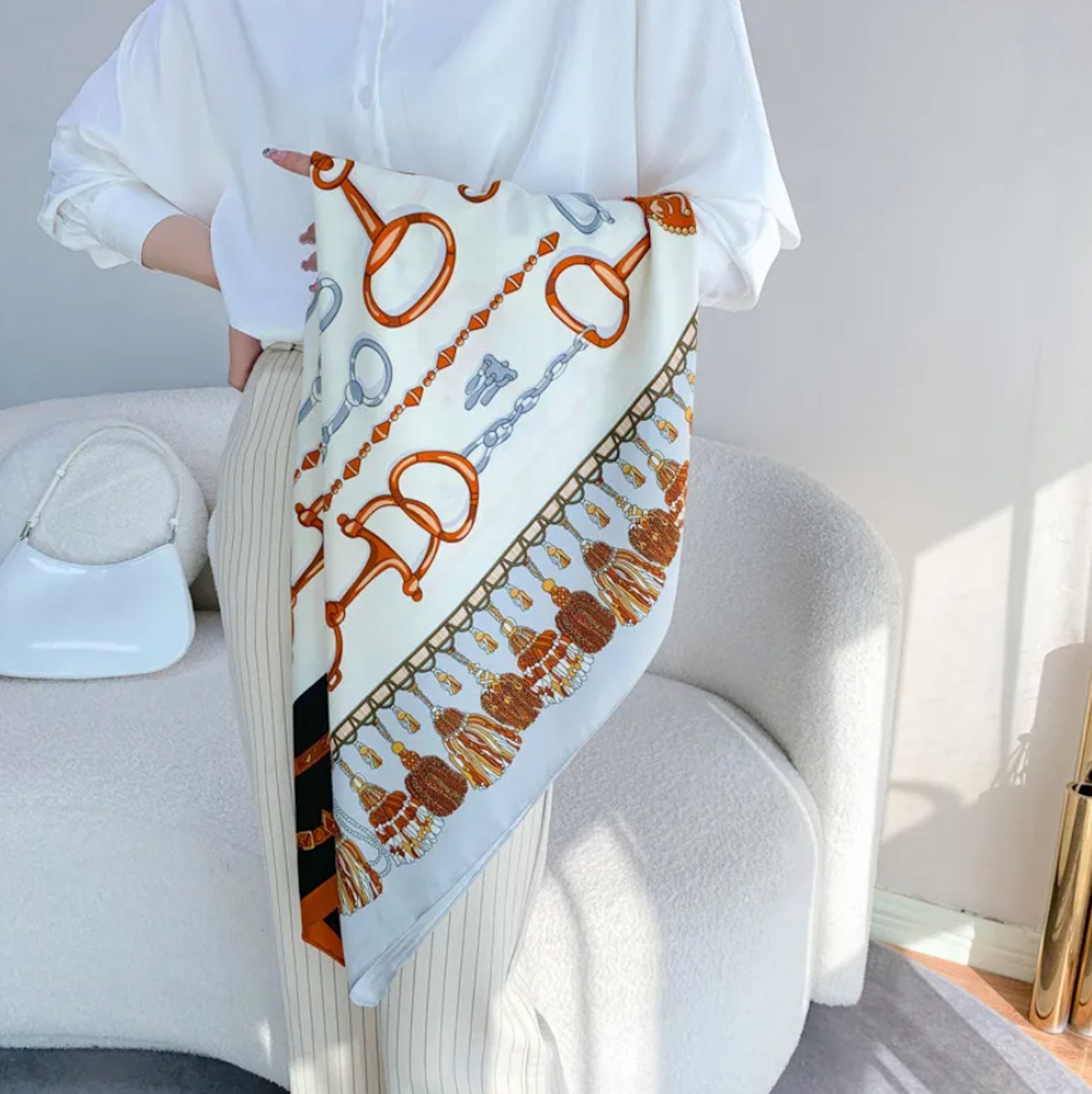 Snaffle Print Hand Rolled Silk Scarf