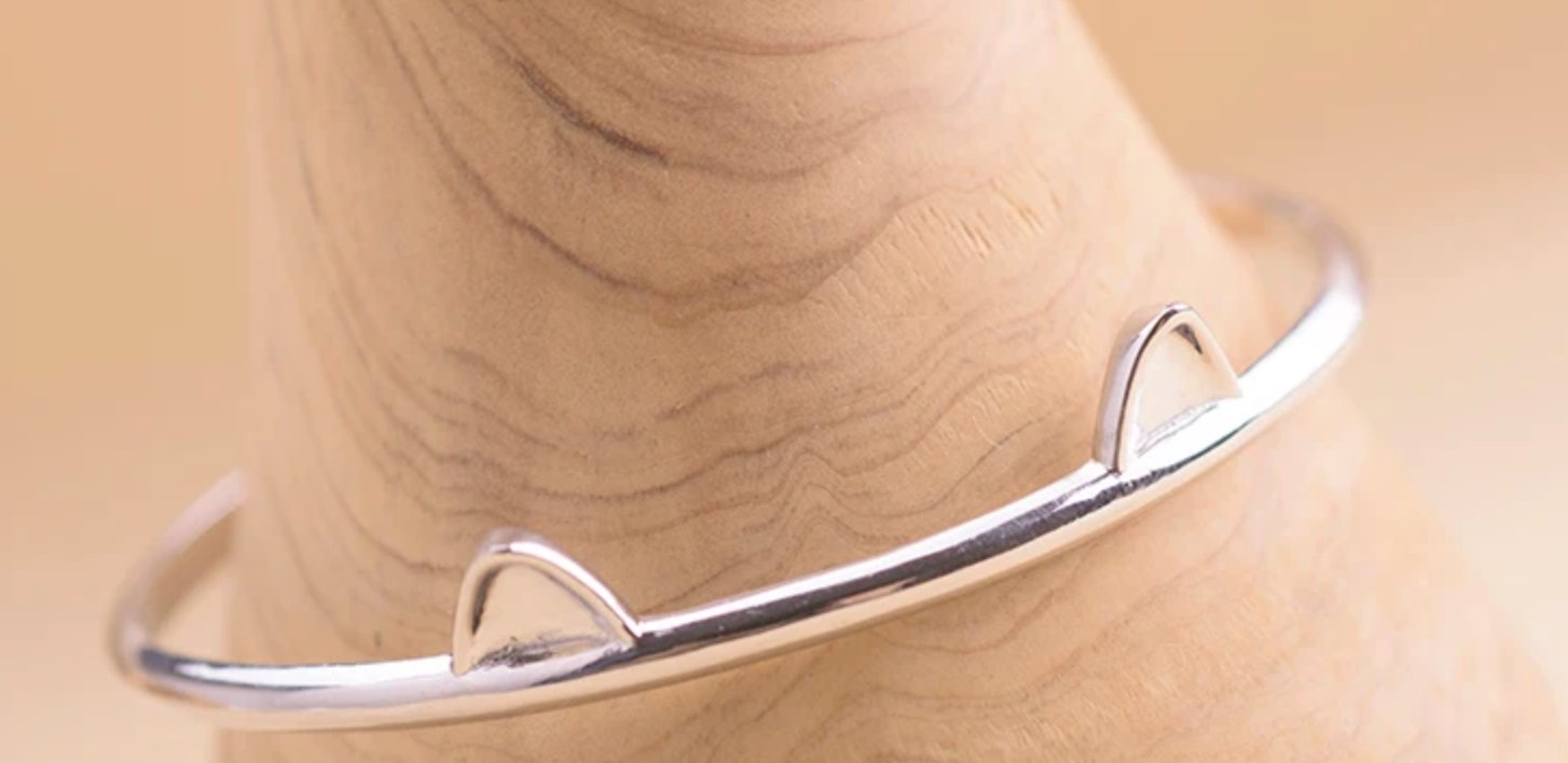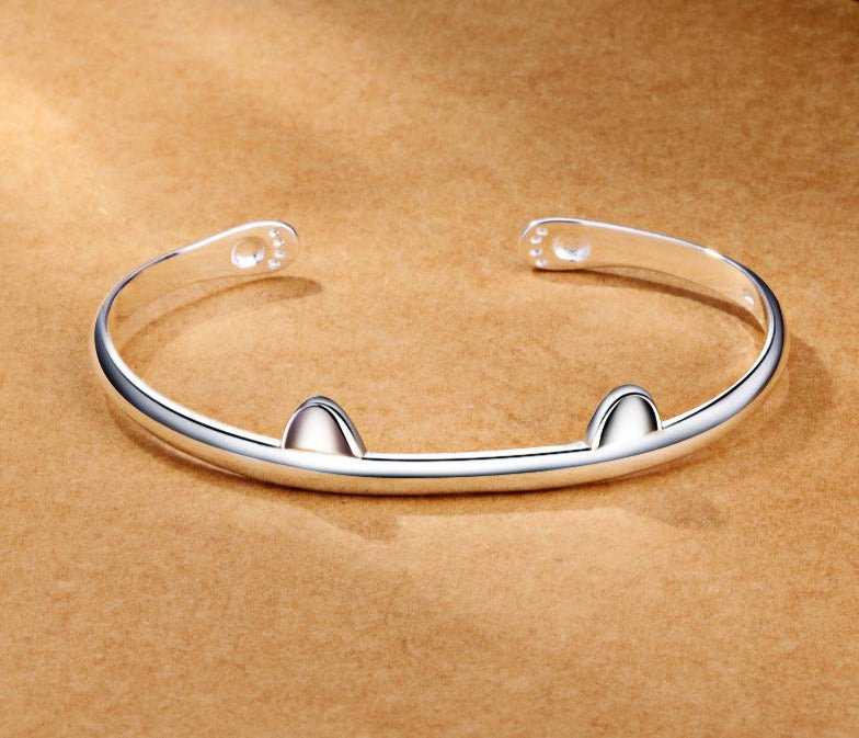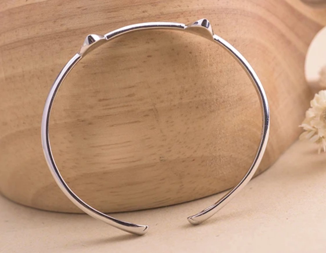 Presenting our unique and beautiful silver-plated 'Cuddling Cat' bangle bracelet, complete with oh-so-cute paw and bean detailing.ย  Purrrfect for every cat-lover!ย