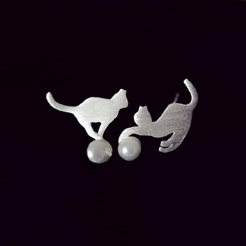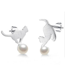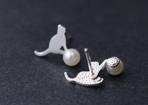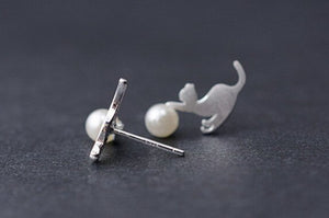 Sterling Silver Pearl Cat Earrings-Furbaby Friends Gifts