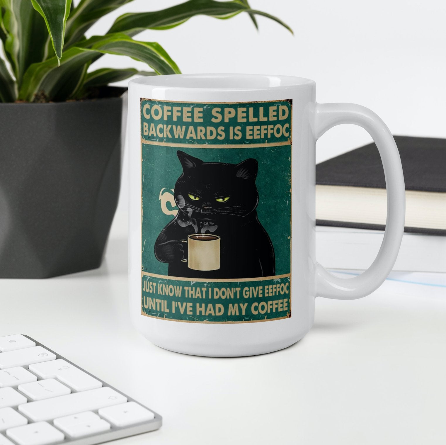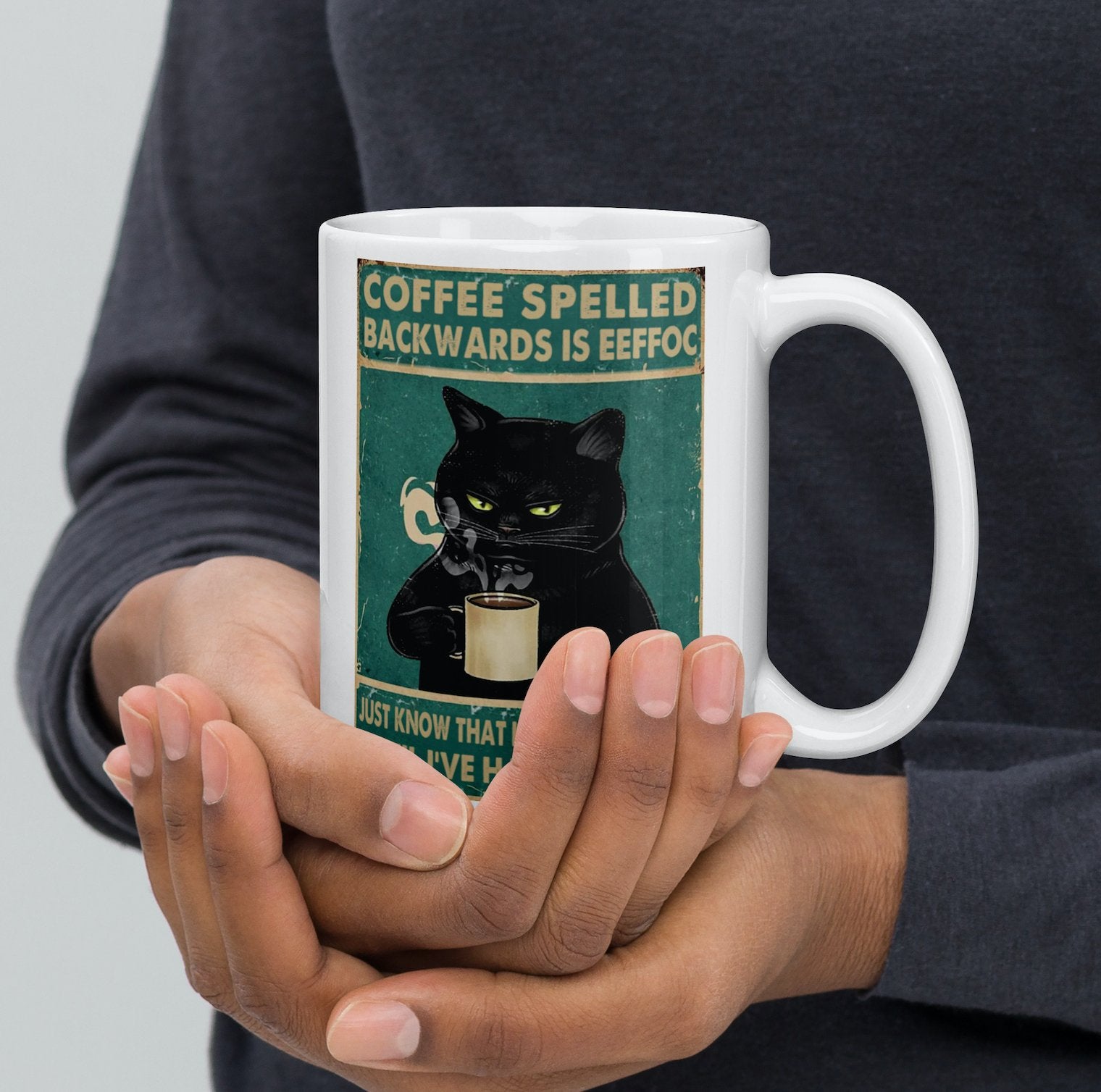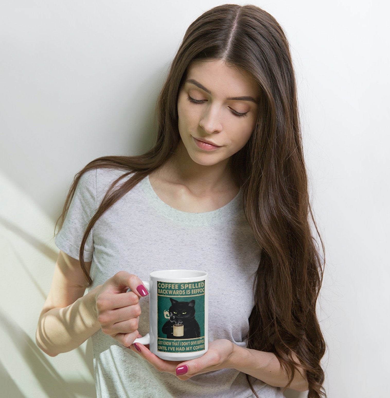 Whether you're drinking your morning coffee, evening tea, or something in between – this mug's for you! It's sturdy and glossy with a vivid, humorous print that'll withstand the microwave and dishwasher.