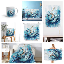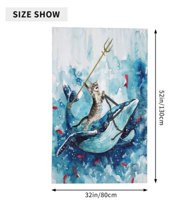 This design is part of our brand new Neptune Cat range, featuring a blanket throw, cushion cover, shower curtain, canvas poster, and mug.