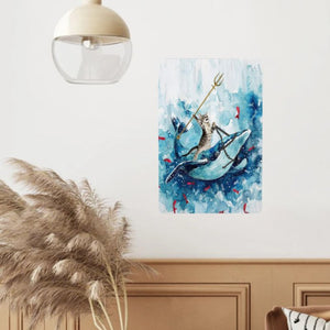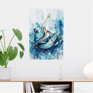 This plaque is part of our brand new Neptune Cat range, featuring a blanket throw, cushion cover, shower curtain, beach towel, canvas poster, and mug