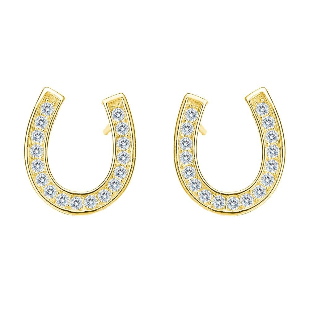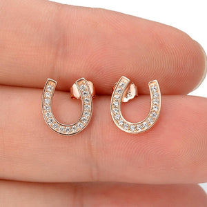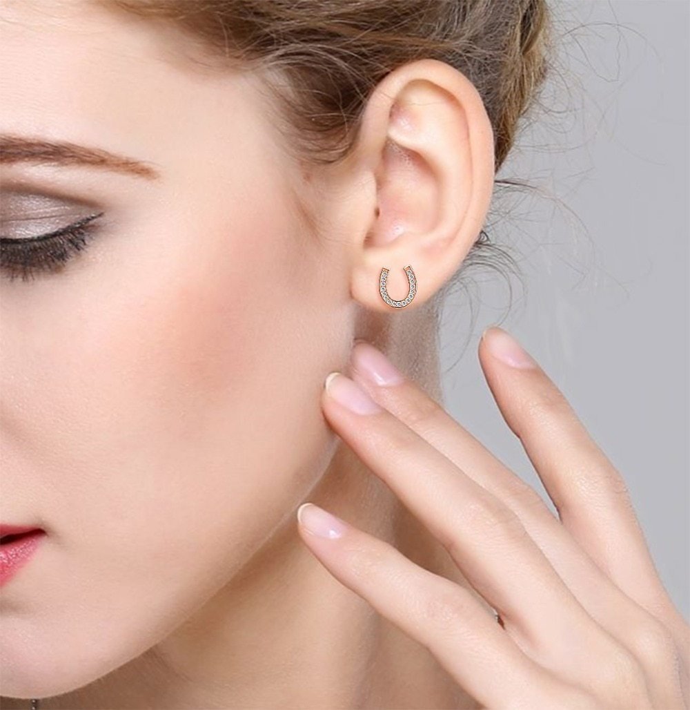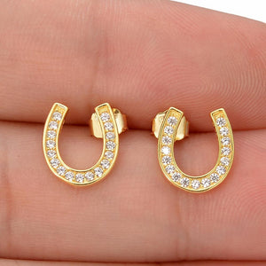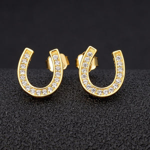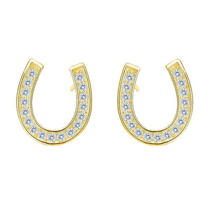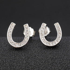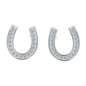 Sterling Silver Crystal Horseshoe Earrings-Furbaby Friends Gifts