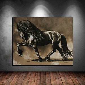 Black Stallion Canvas Oil Print-Furbaby Friends Gifts