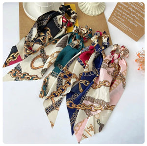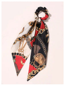 Ajoutez un peu d'élégance et de classe à votre coiffure, avec notre magnifique écharpe/chouchou à imprimé équestre avec un magnifique détail de perles - garanti pour mettre à jour instantanément votre style !