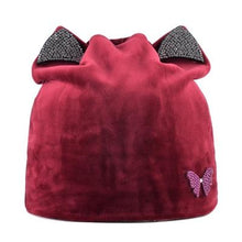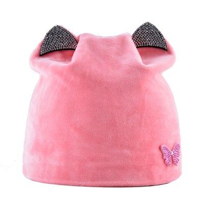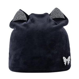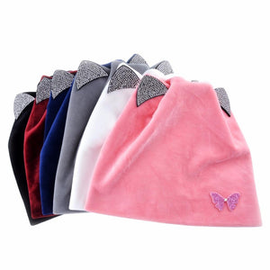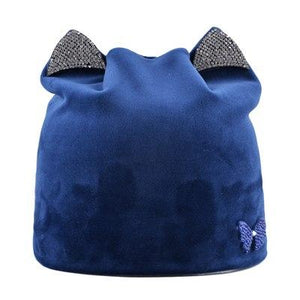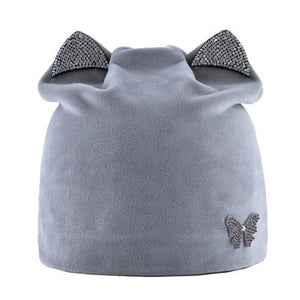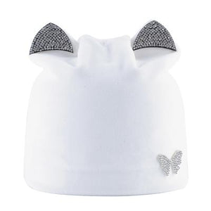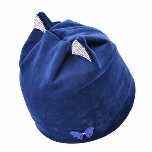 Bonnet en velours glamour et magnifiquement doux avec motif papillon en strass.