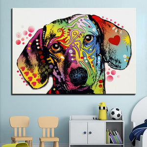 Vous aimez votre petite saucisse ?! Nous vous présentons notre superbe impression sur toile de teckel.