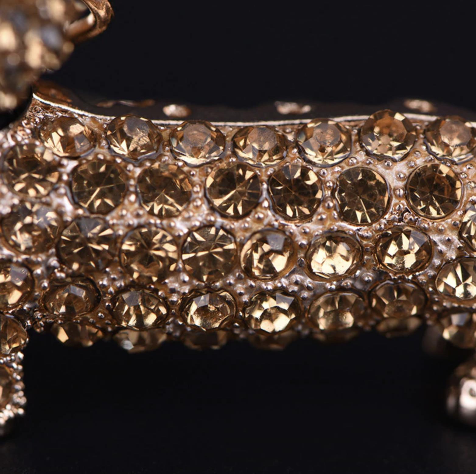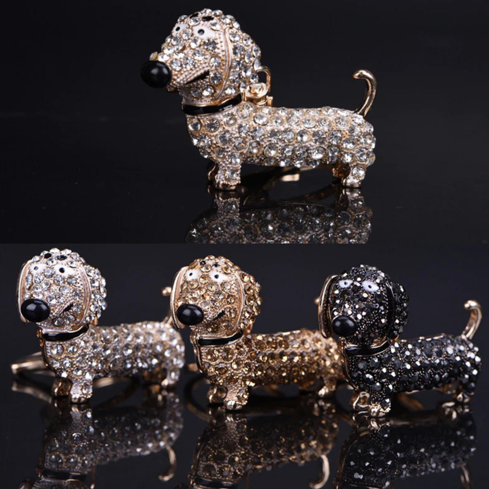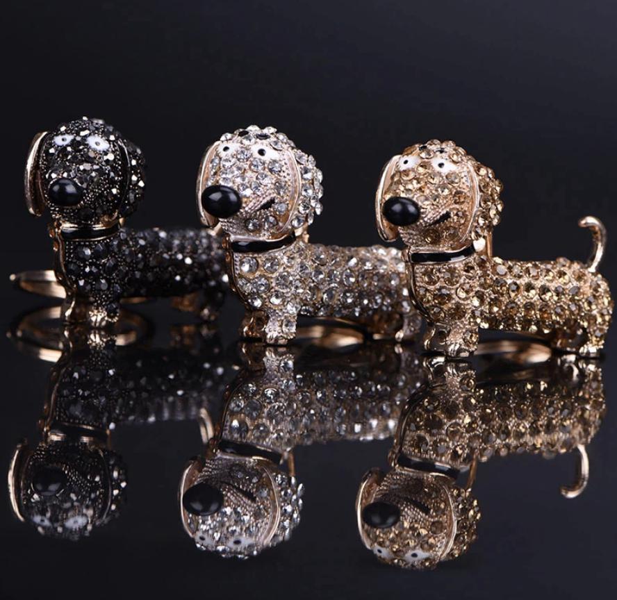 N'est-il pas adorable ! Ce ravissant petit teckel se balancera joyeusement à vos côtés, dans votre voiture, sur votre porte ou votre sac à main, apportant un peu de glamour et d'éclat à votre journée, tous les jours !