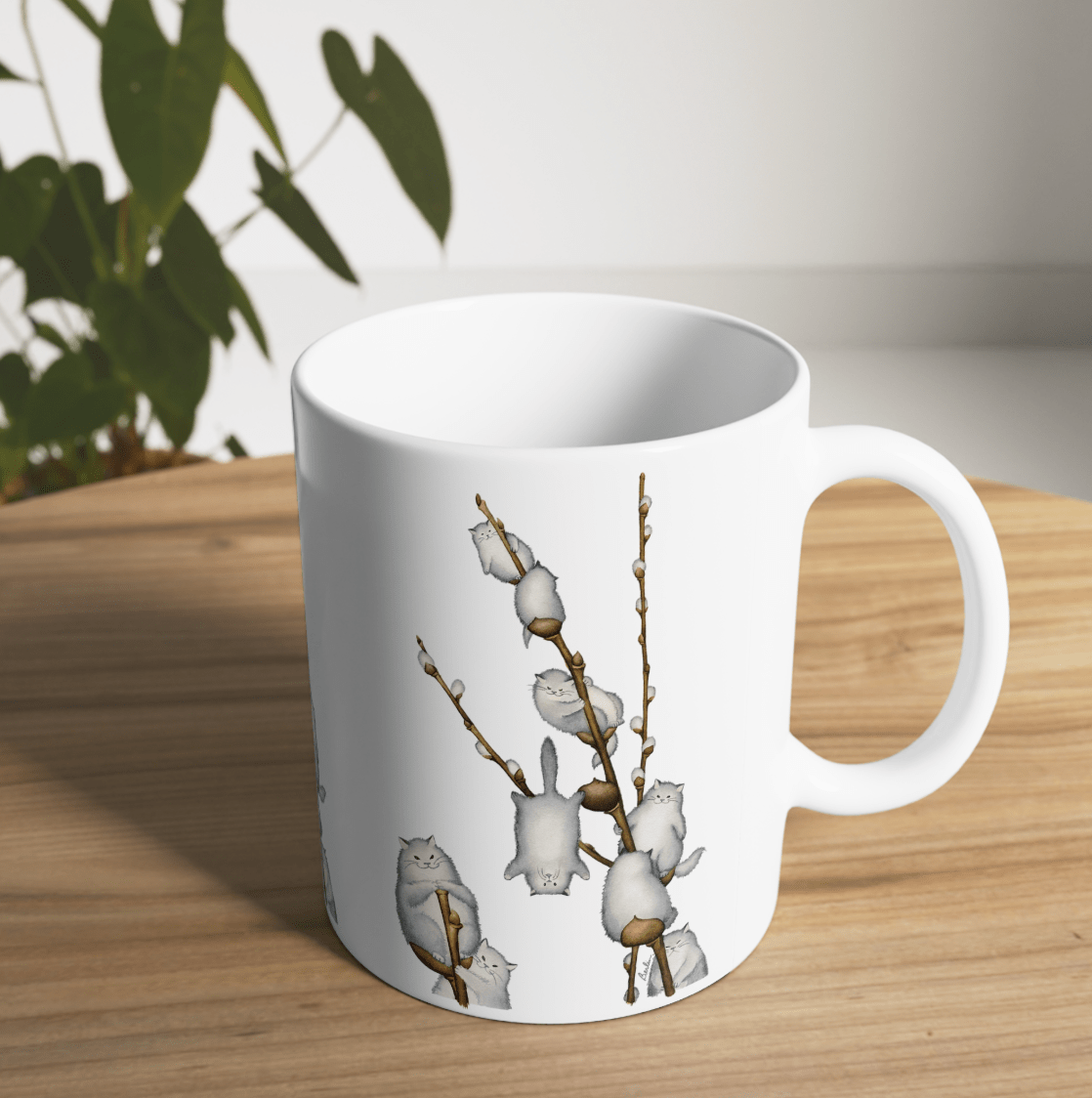 Notre tasse cadeau en céramique Pussywillow Kitties précédemment épuisée est de retour ! Ce dessin absolument adorable de l'artiste américaine Rose Berlin, représentant de petits chatons gris à fourrure sur une branche de Pussywillow, constitue un merveilleux cadeau pour tous les amoureux des chats, jeunes ou vieux, à tout moment de l'année.