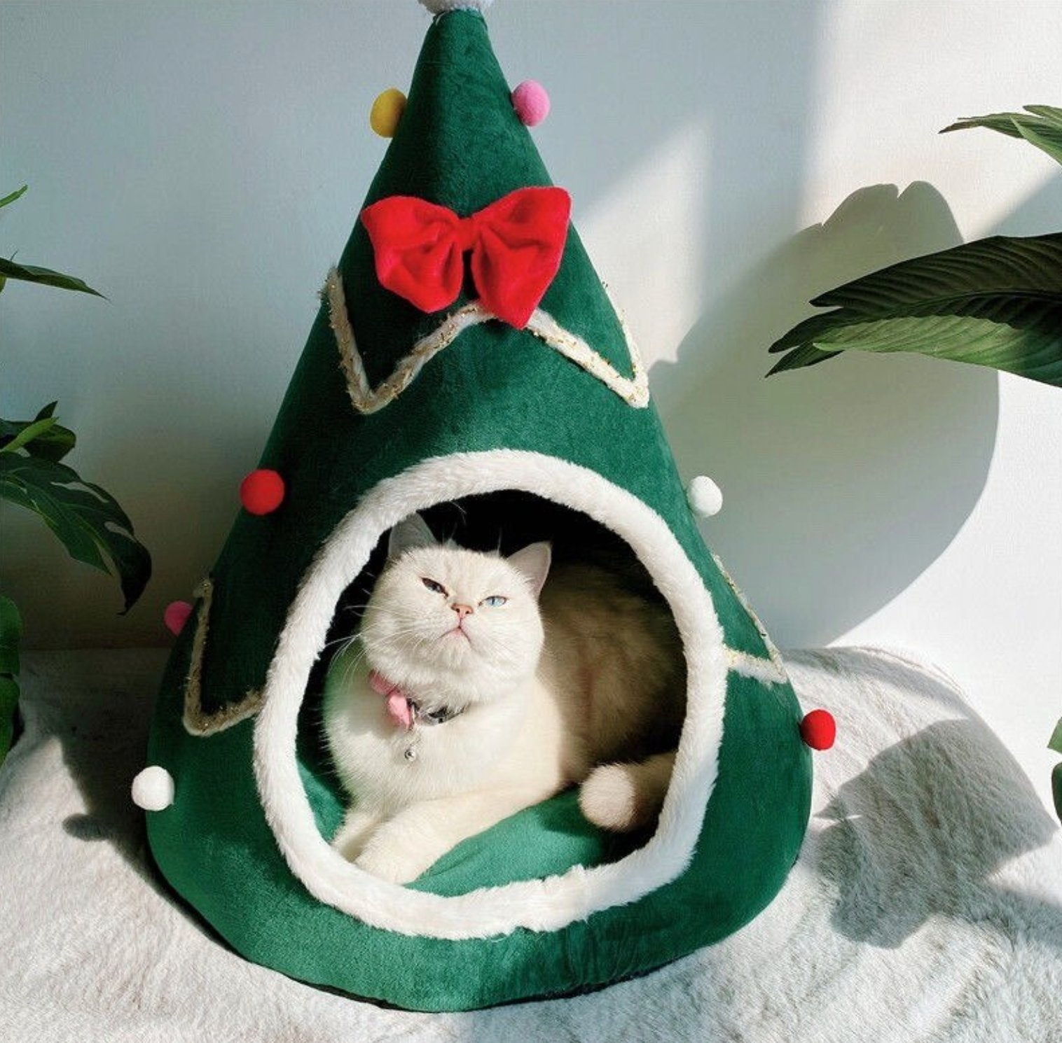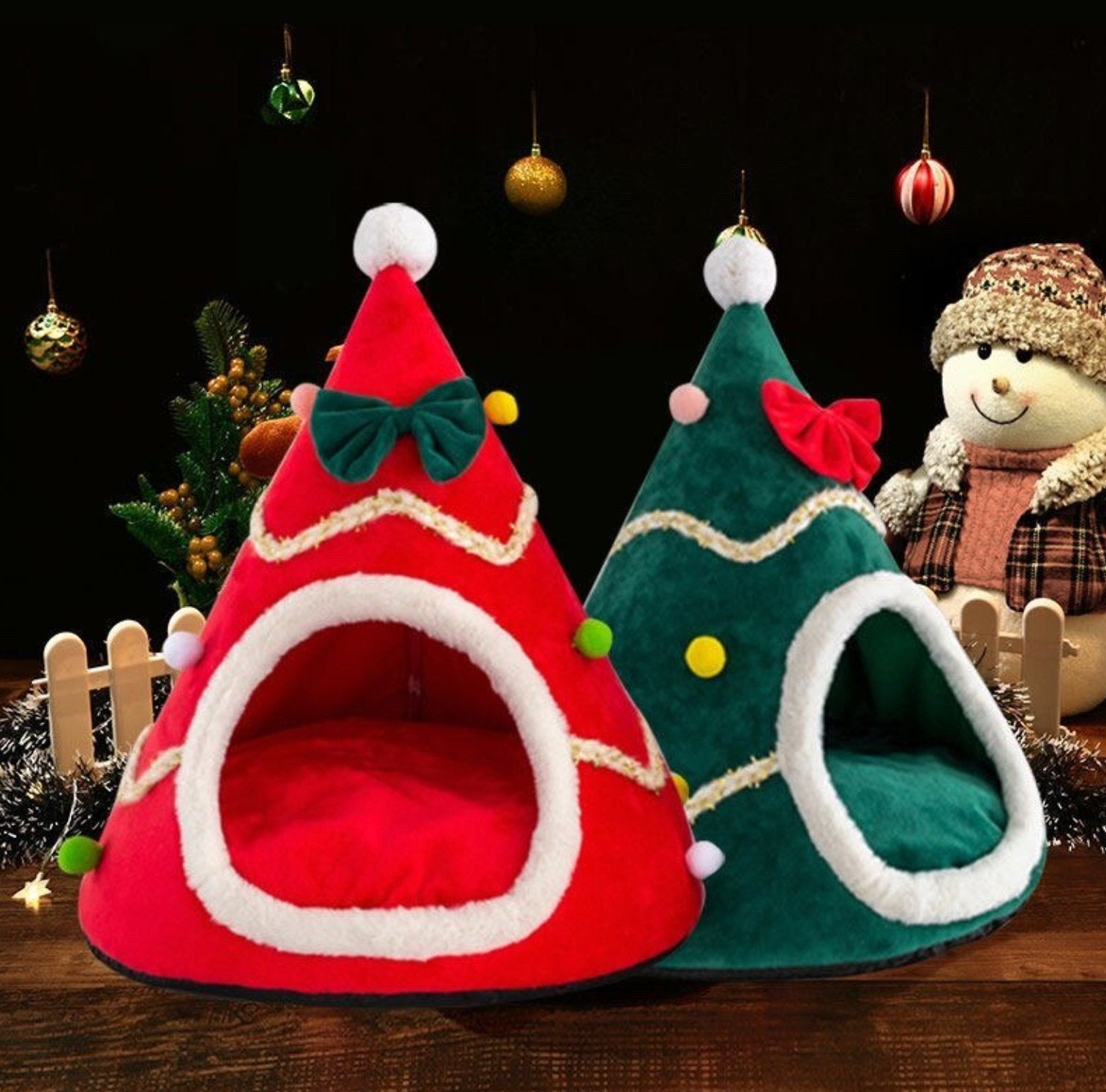 Adorable Velvet Christmas Tree Pet Bed-Furbaby Friends Gifts