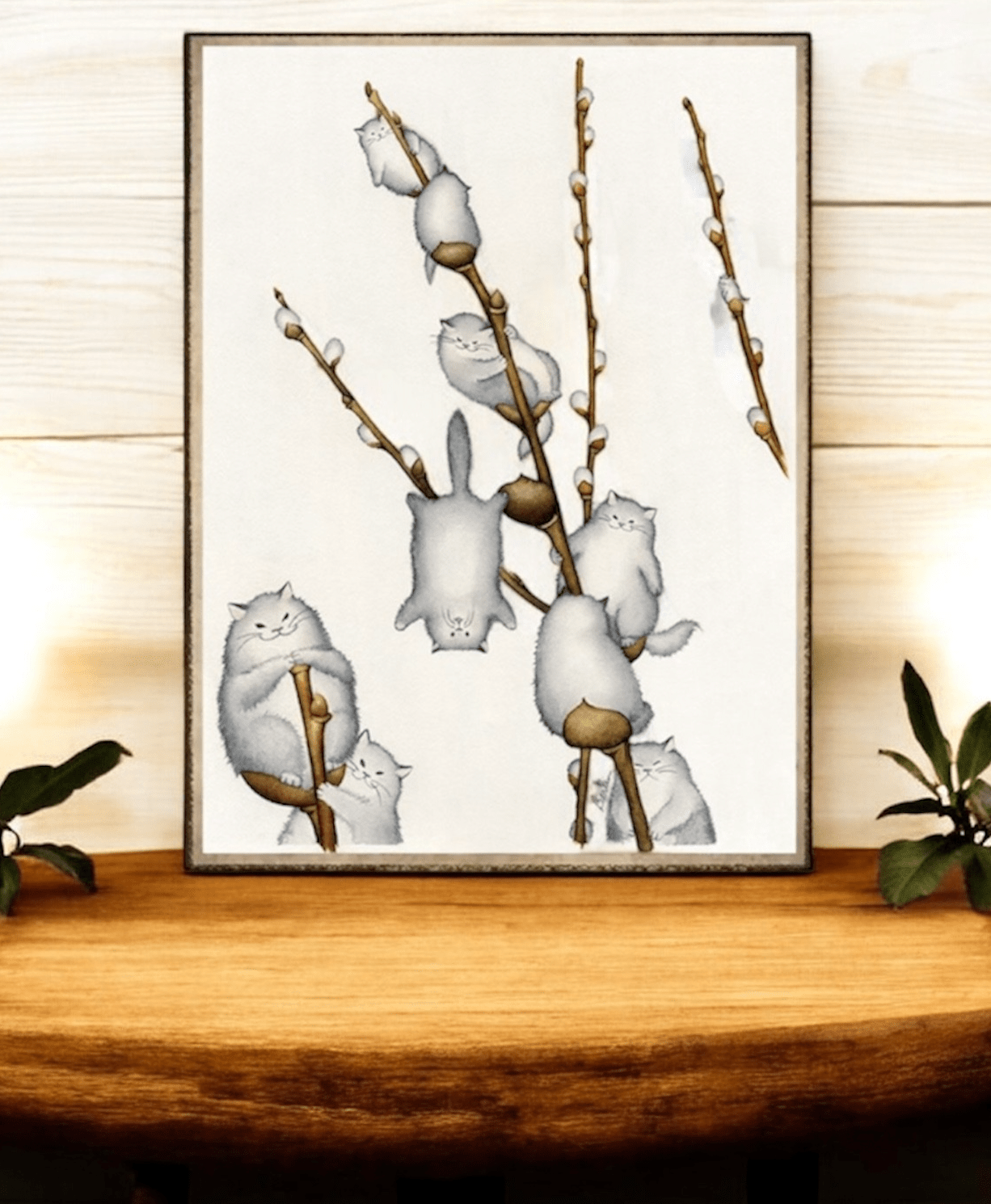 Pussywillow Kitties Canvas Oil Print Posters-Furbaby Friends Gifts
