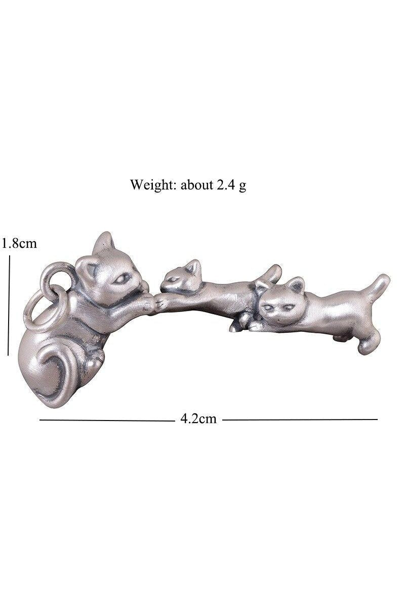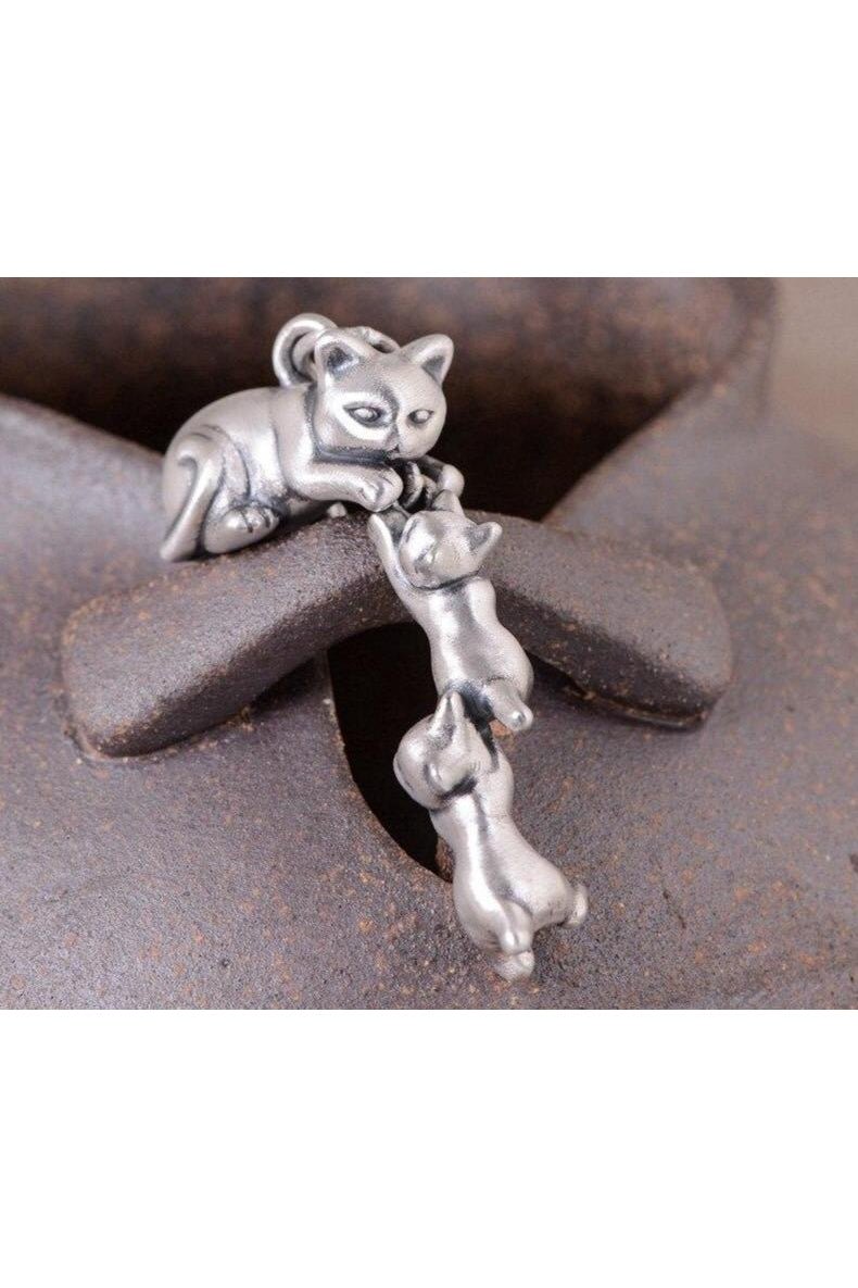 Pendentif famille de chats vintage en argent