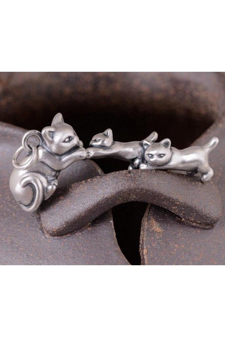 Silver Vintage Cat Family Pendant-Furbaby Friends Gifts