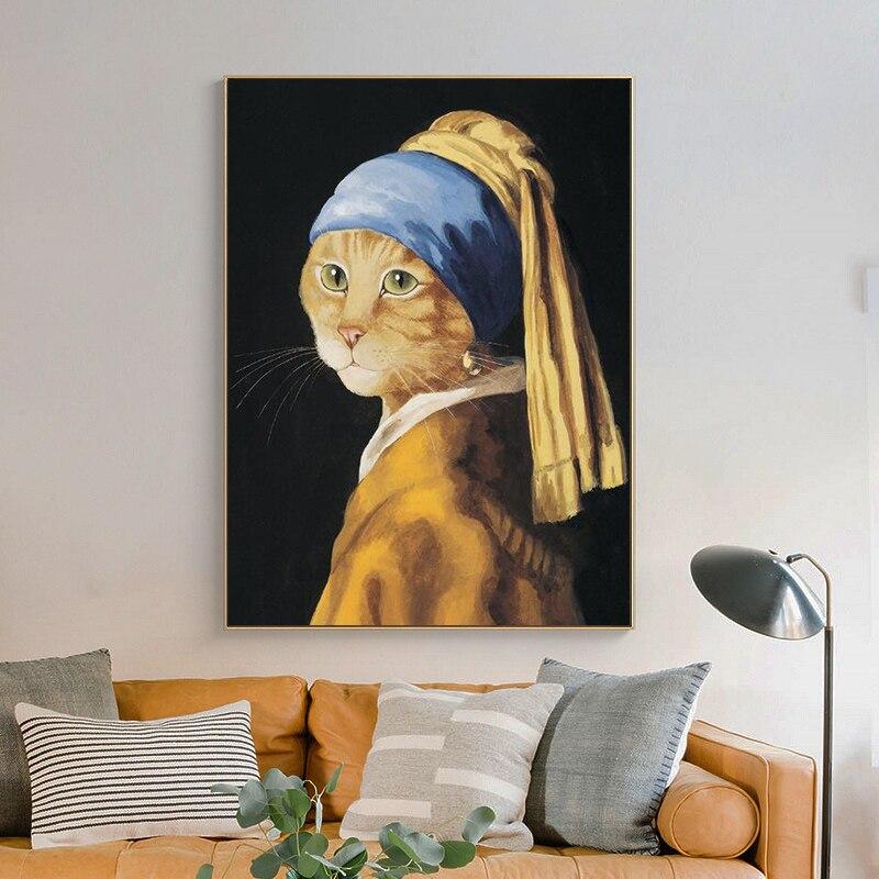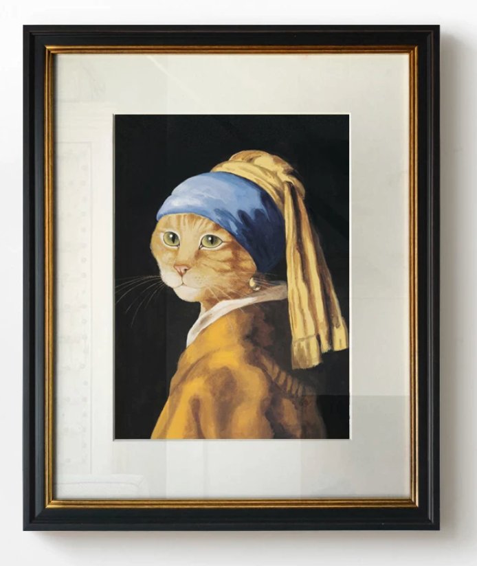 Introducing our fabulous, Cats In Art 'Cat with a Pearl Earring' Canvas Oil Print!  A wonderful adaptation of the famous Dutch Master's work, designed purrrrfectly for cat lovers!