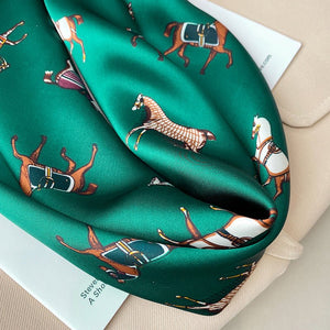 Treat yourself to one of our fabulously silky equestrian print scarves, made from superb quality Mulberry silk, with a high definition print and a beautiful sheen. These sumptuous scarves come in either green or a go-with-everything natural colour.