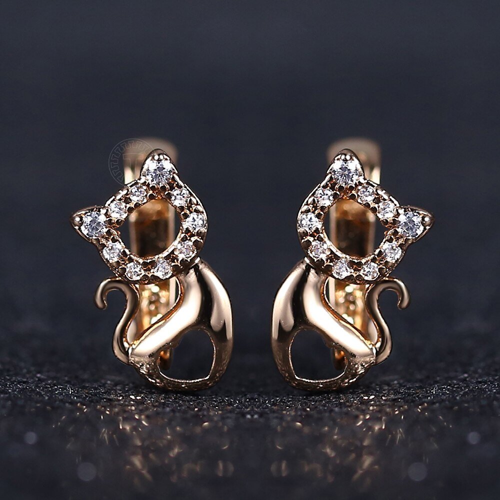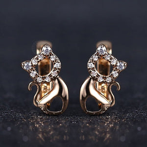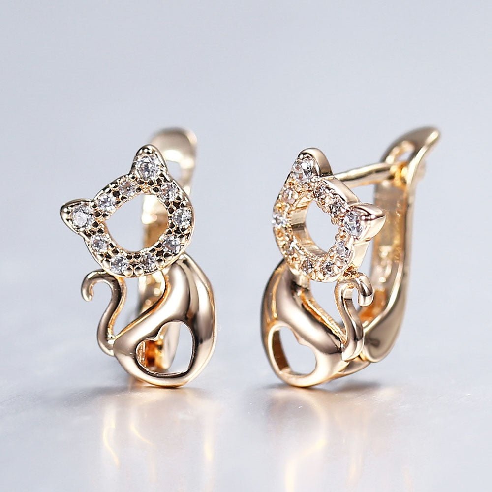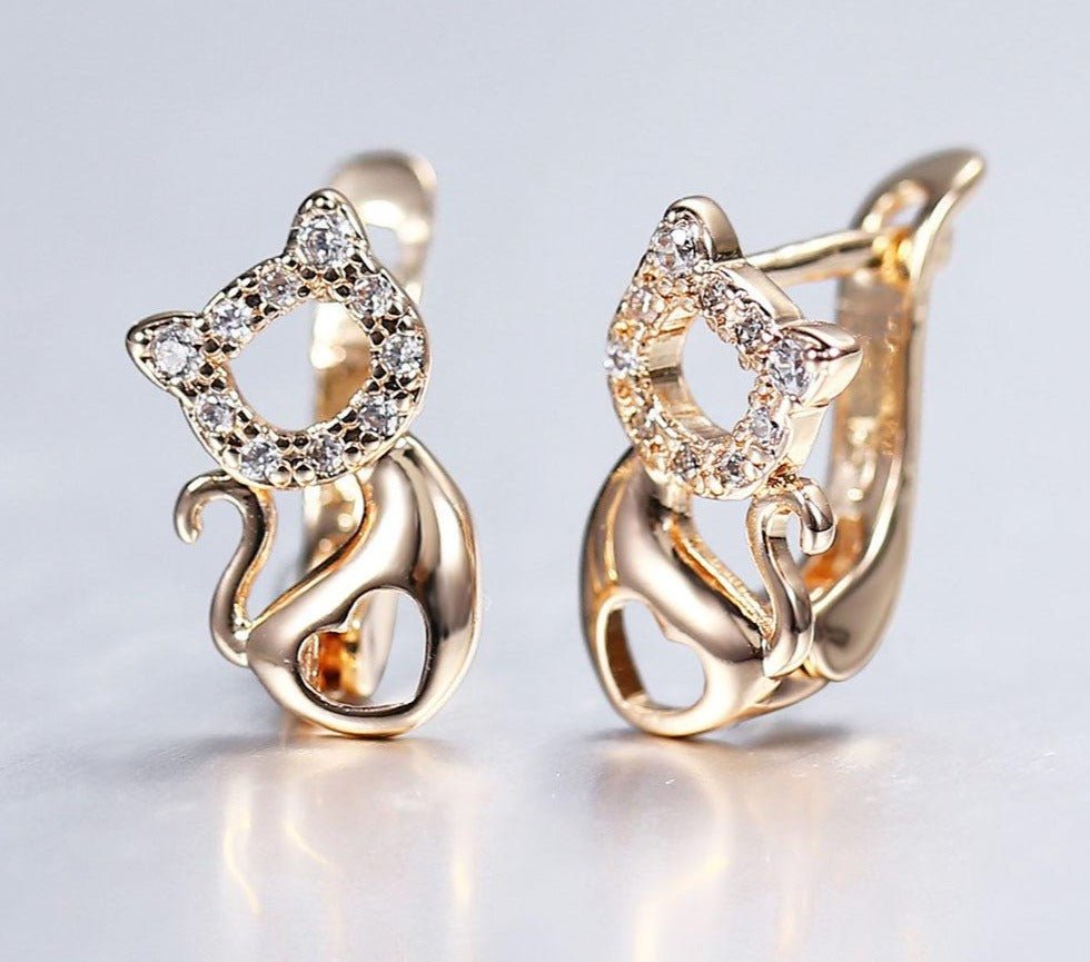 Introducing our gorgeous 14k gold kitty cat earrings, completely adorned with twinkly cubic zirconia crystals.