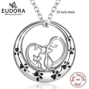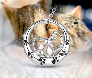 Silver Cat & Kitten Pendant Necklace-Furbaby Friends Gifts