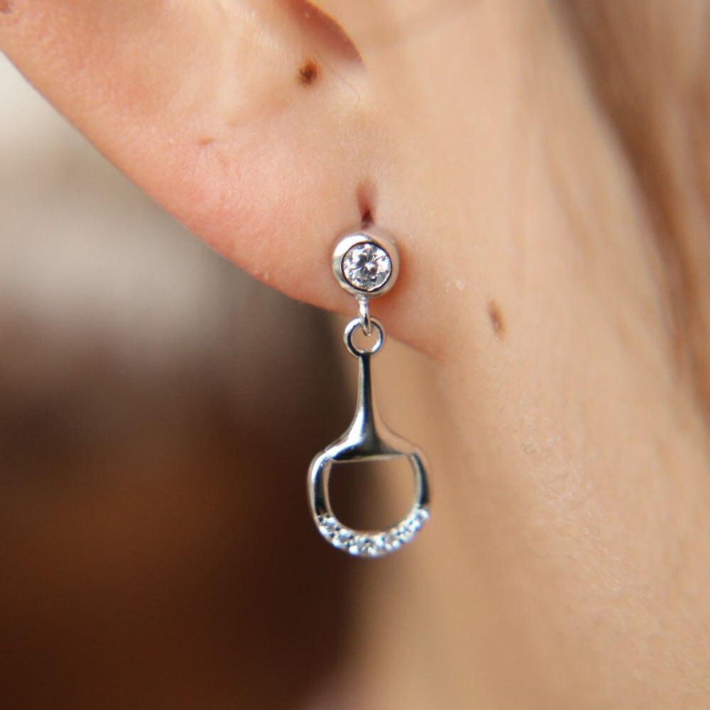 Snaffle-Bit Platinum Crystal Earrings-Furbaby Friends Gifts