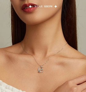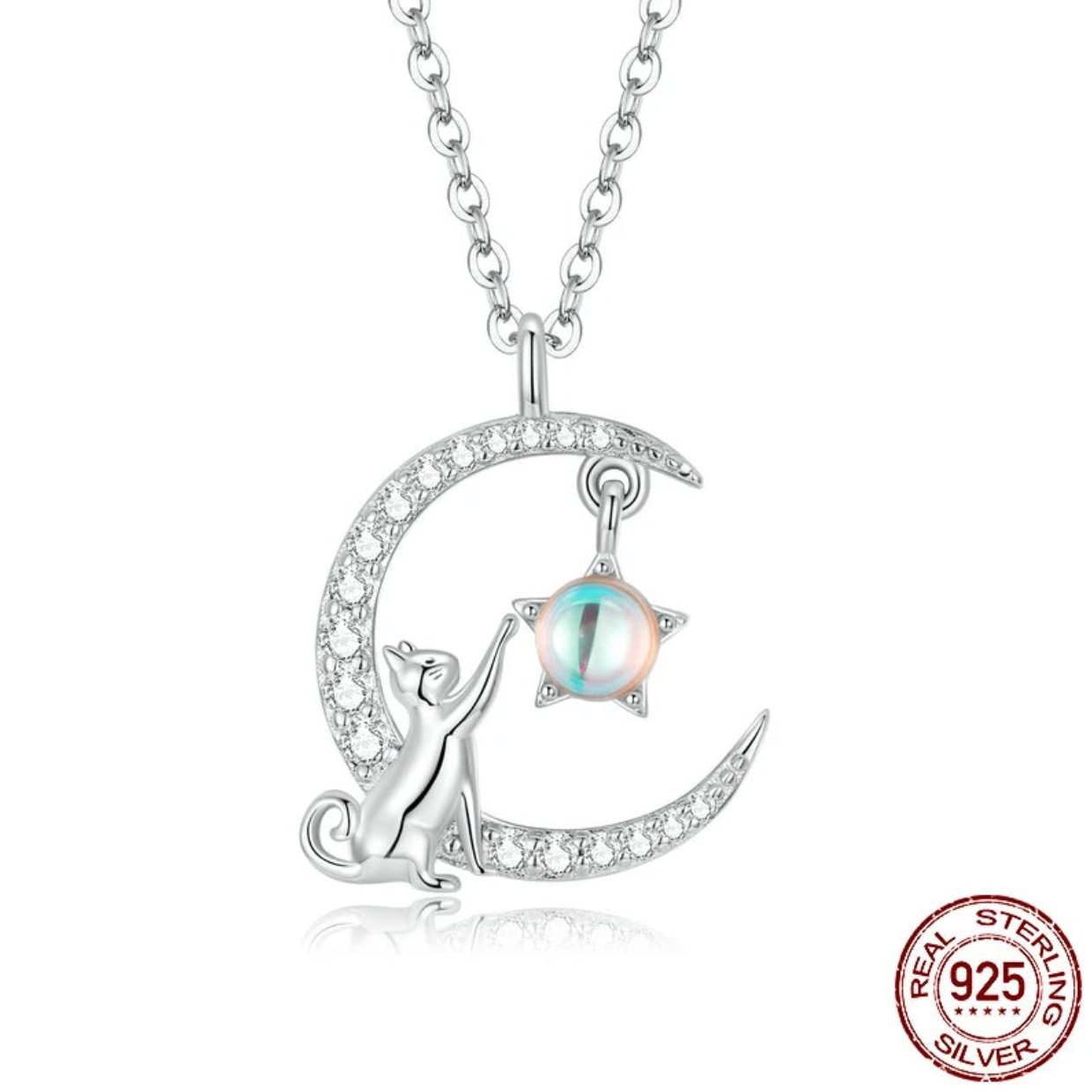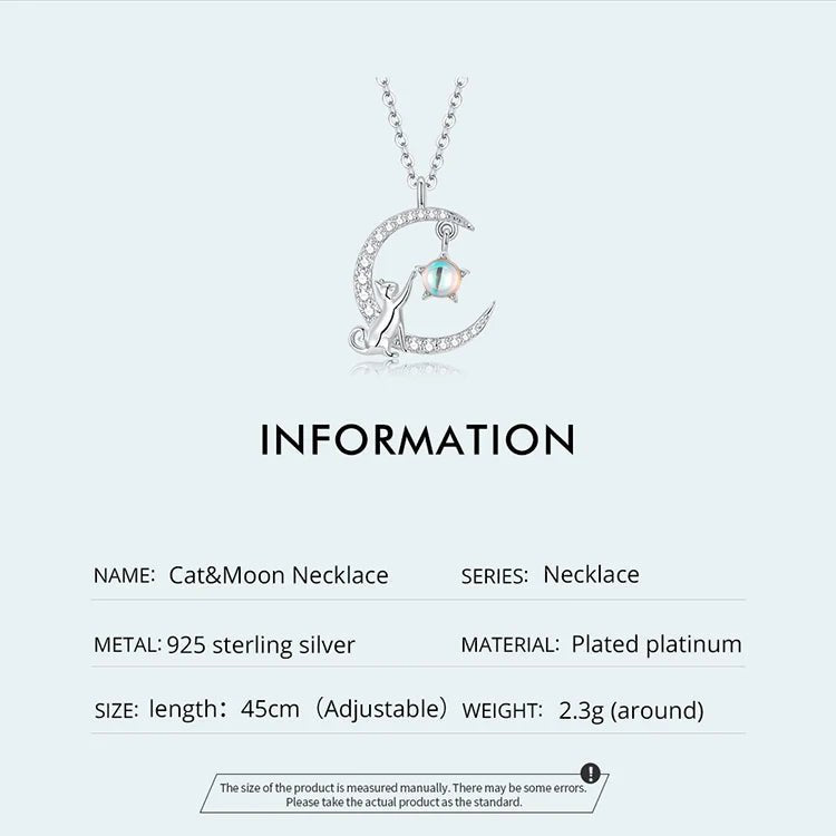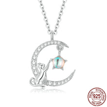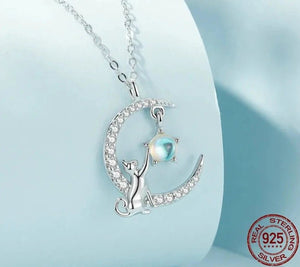Sterling Silver Cat & Moon Pendant Necklace-Furbaby Friends Gifts