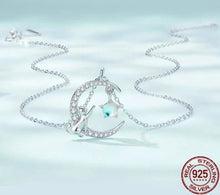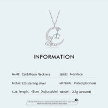 Sterling Silver Cat & Moon Pendant Necklace
