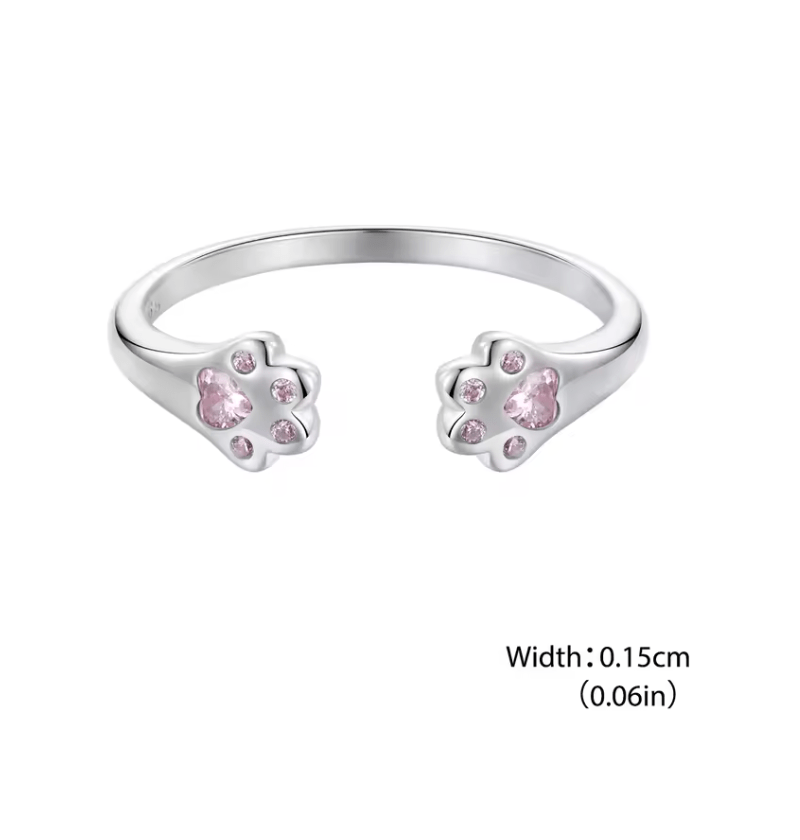 925 Sterling Silver 'Paw Hug' Adjustable Rings
