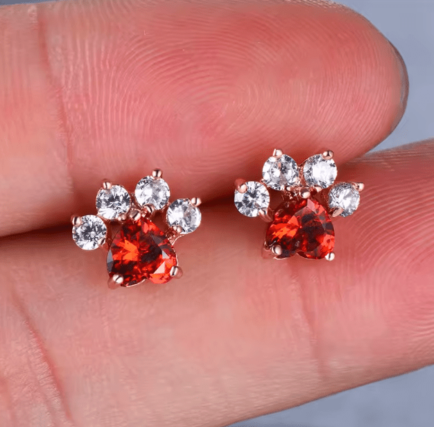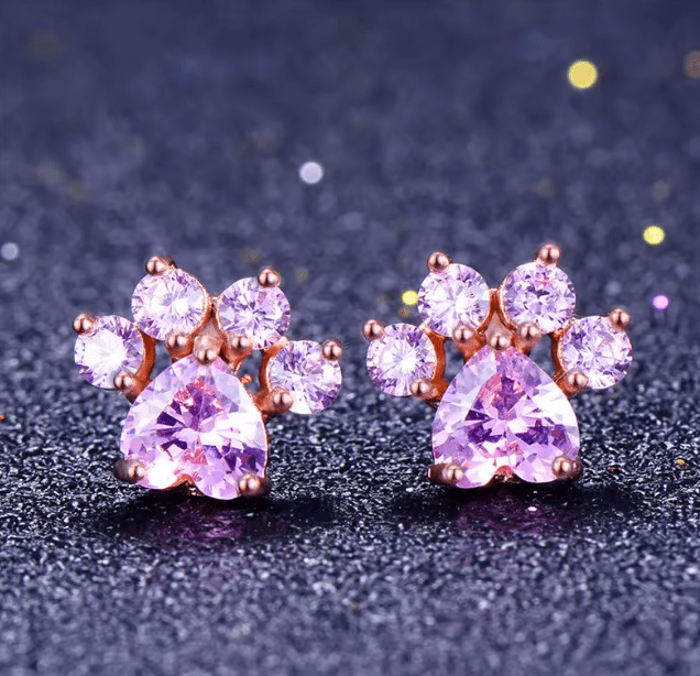 Introducing our gorgeous paw print stud Sterling Silver earrings,  adorned with a mass of pink twinkly cubic zirconia crystals for that timeless elegance.